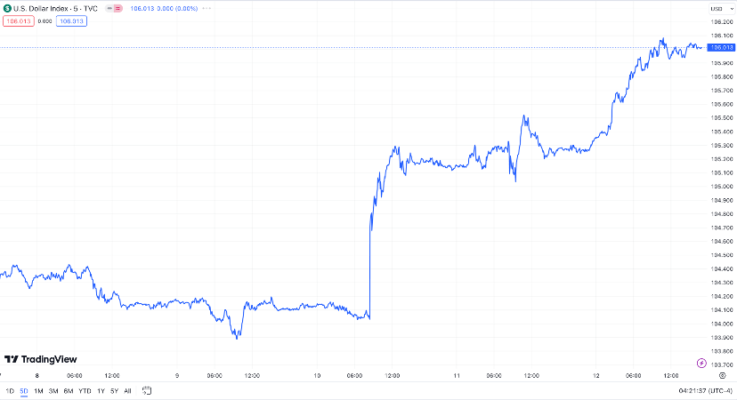 Last week, the U.S. Dollar Index (DXY) surged significantly after the release of new inflation data on Wednesday, exceeding expectations. By Friday's close, it had risen to 106.013, marking a 1.6% increase compared to the previous week's 104.286.