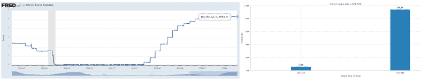 Left: EFFR, Right: Target Rate Probabilities for May 2024 Fed Meeting