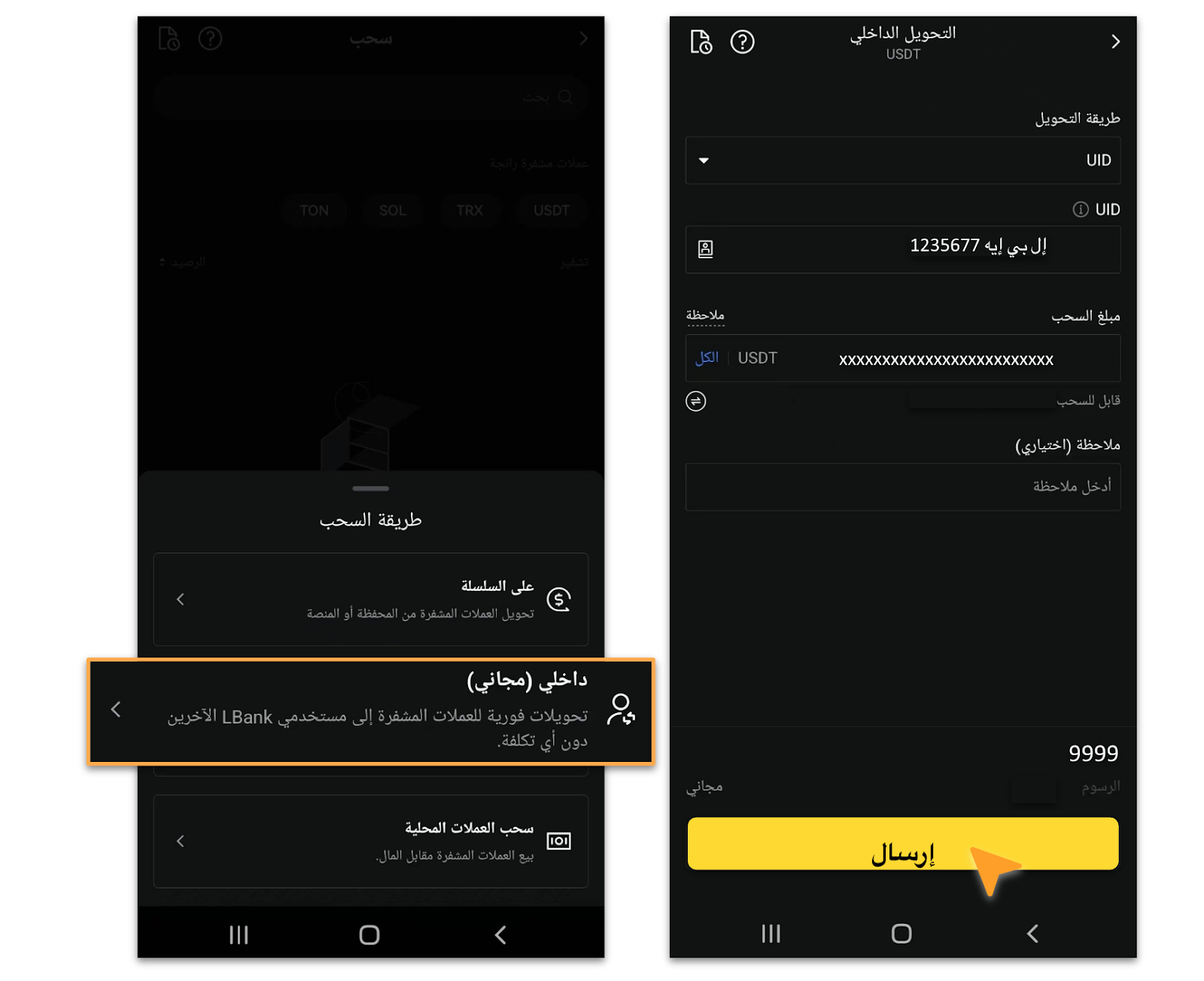 - أدخل [المعرّف الفريد للمستخدم] وتفاصيل مبلغ السحب.