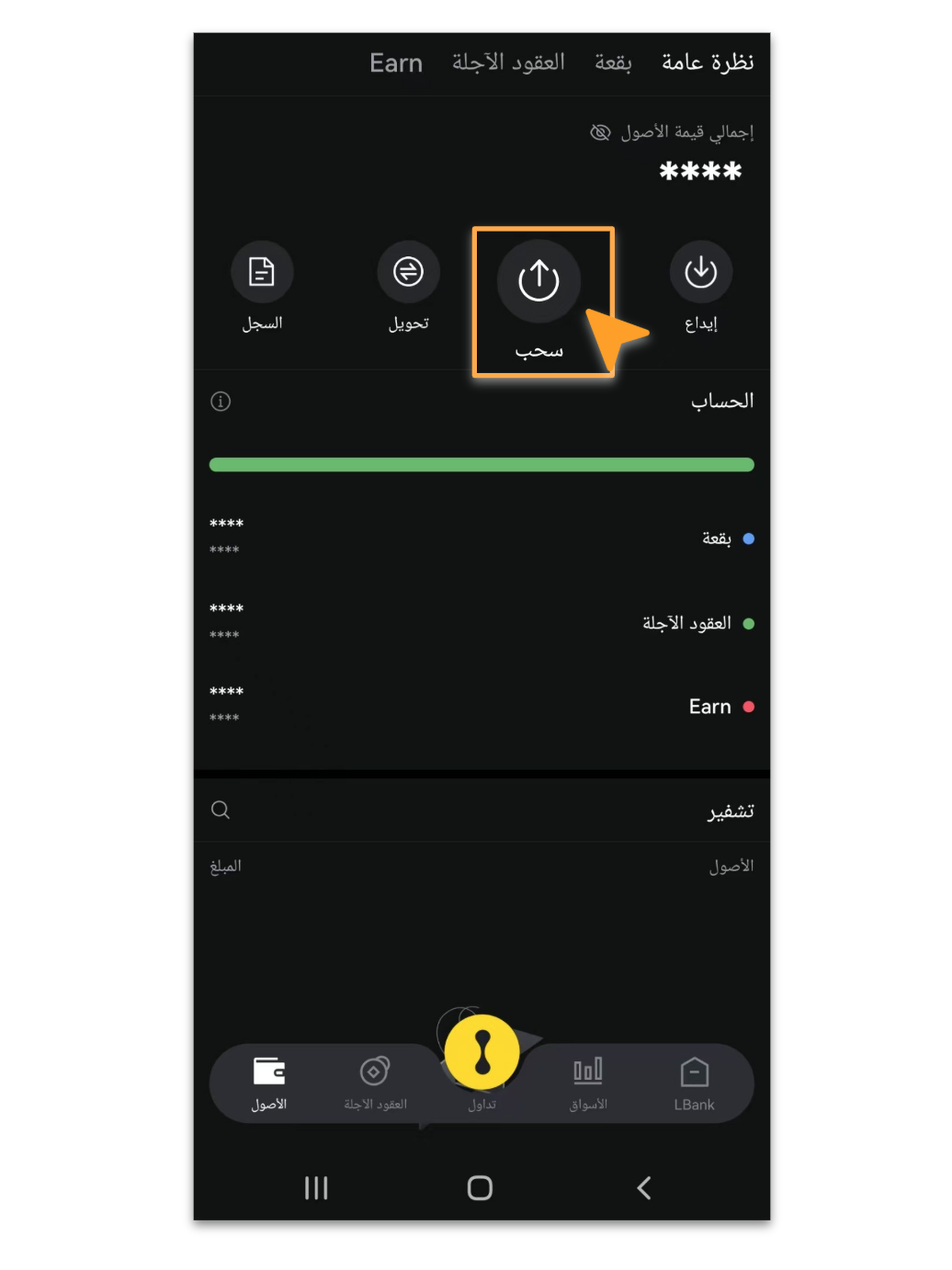 - انقر على [الأصول] من القائمة السفلية في تطبيق LBank.