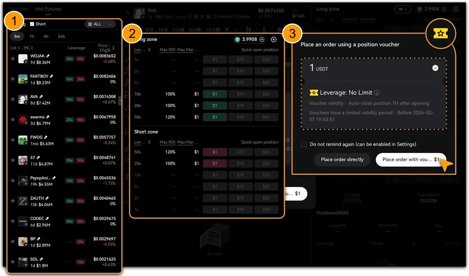 LBank führt den Omni-Futures-Positionsgutschein ein, um Nutzern den Einstieg in den Futures-Handel mit geringeren Kosten zu ermöglichen. Der Gutschein erlaubt es Ihnen, den gesamten Ablauf des Eröffnens, Haltens und Schließens von Positionen kennenzulernen und gleichzeitig von exklusiven Plattformrabatten während des Aktionszeitraums zu profitieren. Bei der Verwendung eines Omni-Futures-Positionsgutscheins sind alle entstehenden Gewinne und Verluste real, und entsprechende Handelsgebühren fallen an. Bitte prüfen Sie vor der Nutzung die unterstützten Handelspaare, die Hebelgrenzen, die Gültigkeitsdauer sowie die Abrechnungsregeln, um Ihre Positionen und den Einsatz von Hebelwirkung entsprechend zu planen.