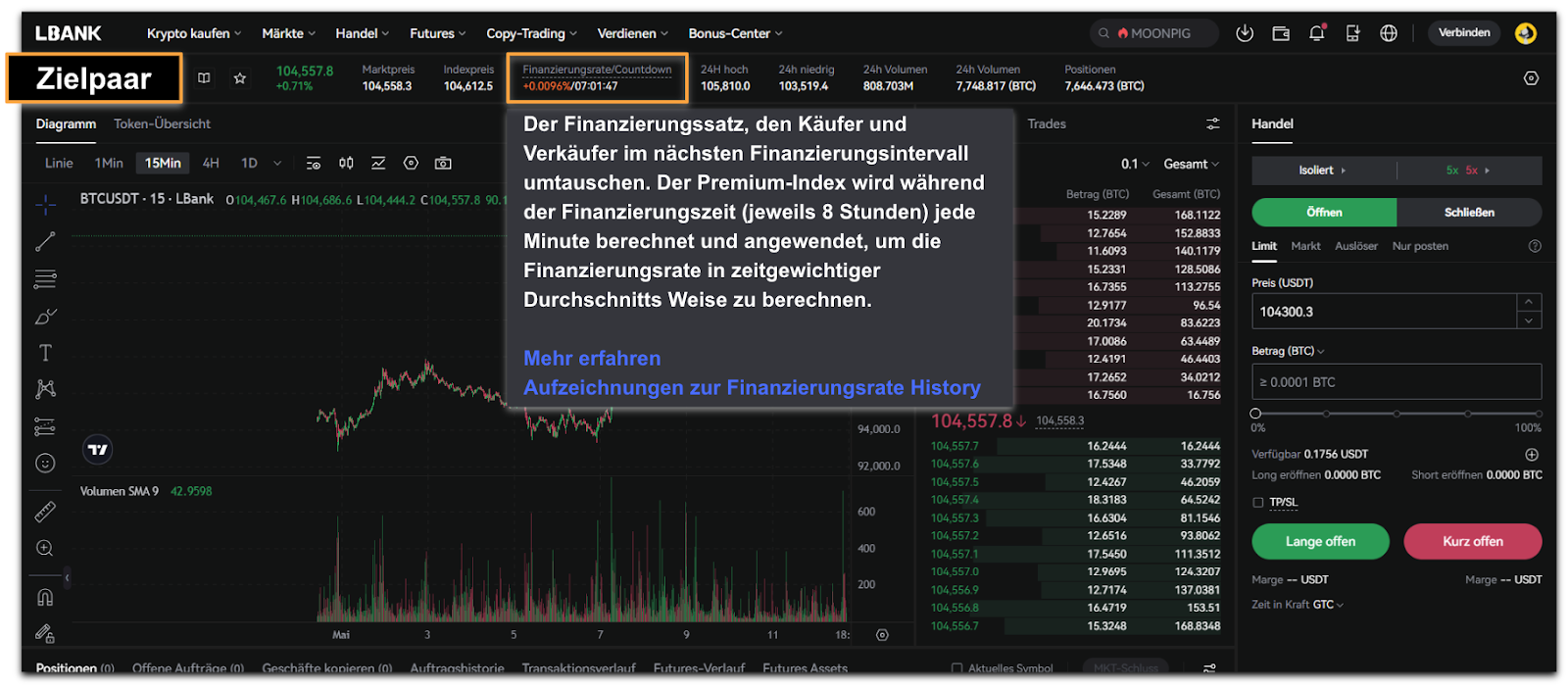 Die LBank berechnet den Premium-Index jede Sekunde und ermittelt einen zeitgewichteten Durchschnitt über alle Indizes bis zur Finanzierungszeit.