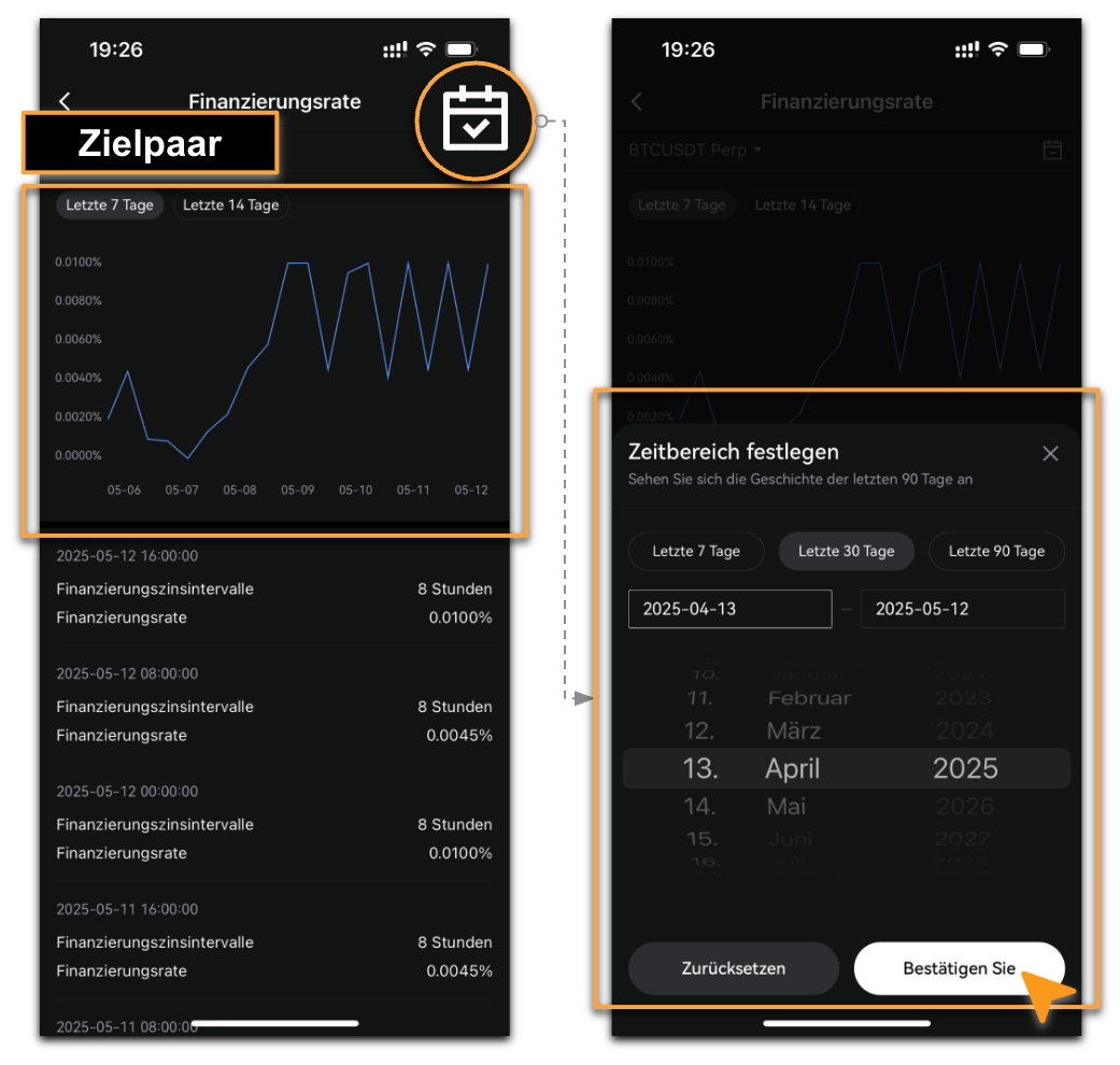 - Tippen Sie auf, um die Definition von [Finanzierungsrate/Countdown] zu überprüfen.