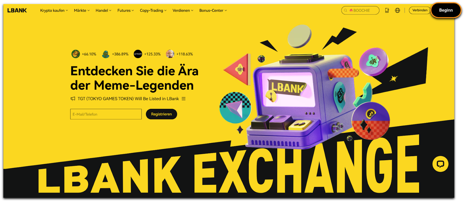 - Gehen Sie auf https://www.lbank.com/de und tippen Sie auf [Start] im Menü oben rechts.