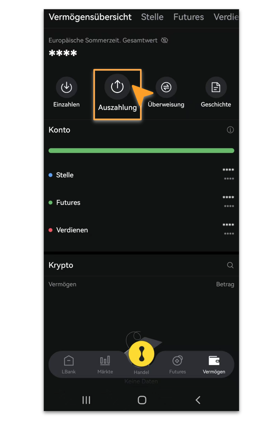 - Tippen Sie im unteren Menü der LBank-App auf [Vermögenswerte].