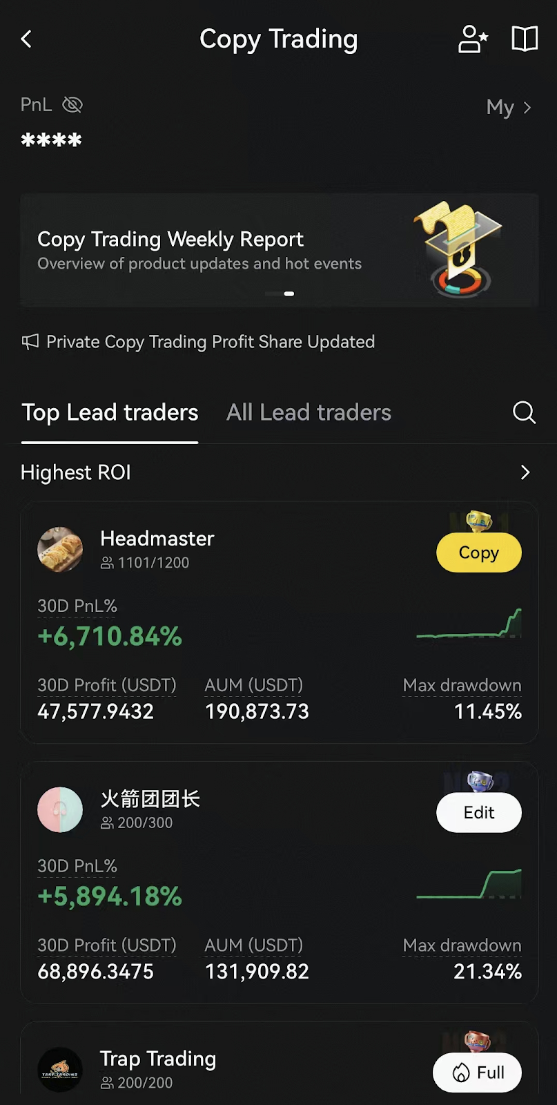 - Die Copy Trading-Plattform wurde von einer responsiven Webansicht auf eine vollständig native App-Oberfläche umgestellt, wodurch die Effizienz der Bildschirmnutzung verbessert und die Benutzeroberfläche vereinfacht wurde.