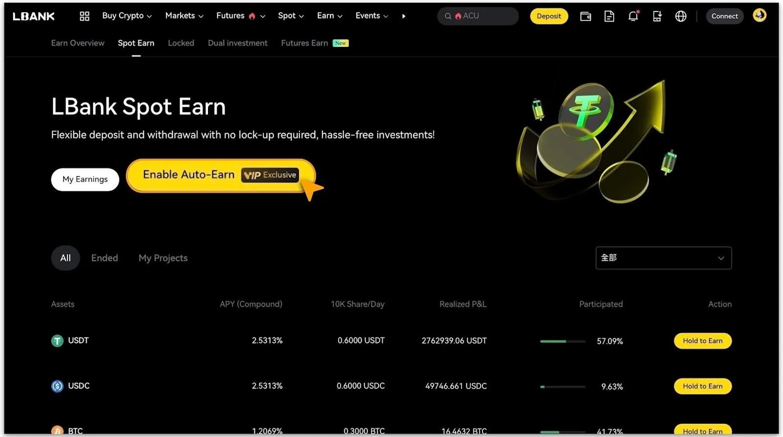 LBank está comprometida con maximizar la utilización de los activos de los usuarios al introducir la función Spot Auto-Earn. Esta herramienta ligera de rendimiento automatiza y habilita de forma fluida que tus activos inactivos participen en productos Spot Earn sin suscripción manual. Esta guía explica cómo usar la función y aborda preguntas comunes. Está disponible exclusivamente para usuarios VIP y está diseñada para ayudarte a aumentar fácilmente los retornos de tus activos.