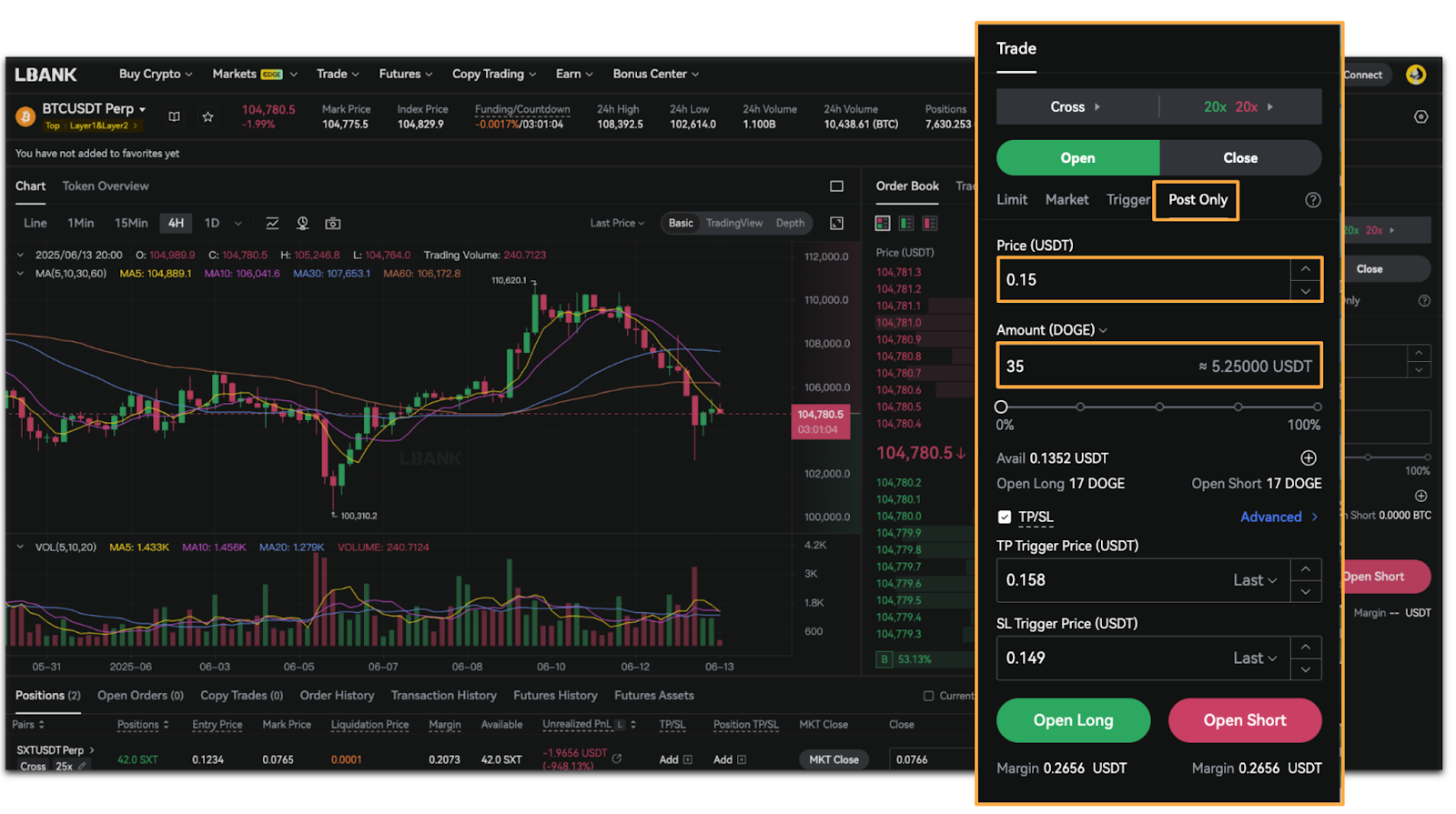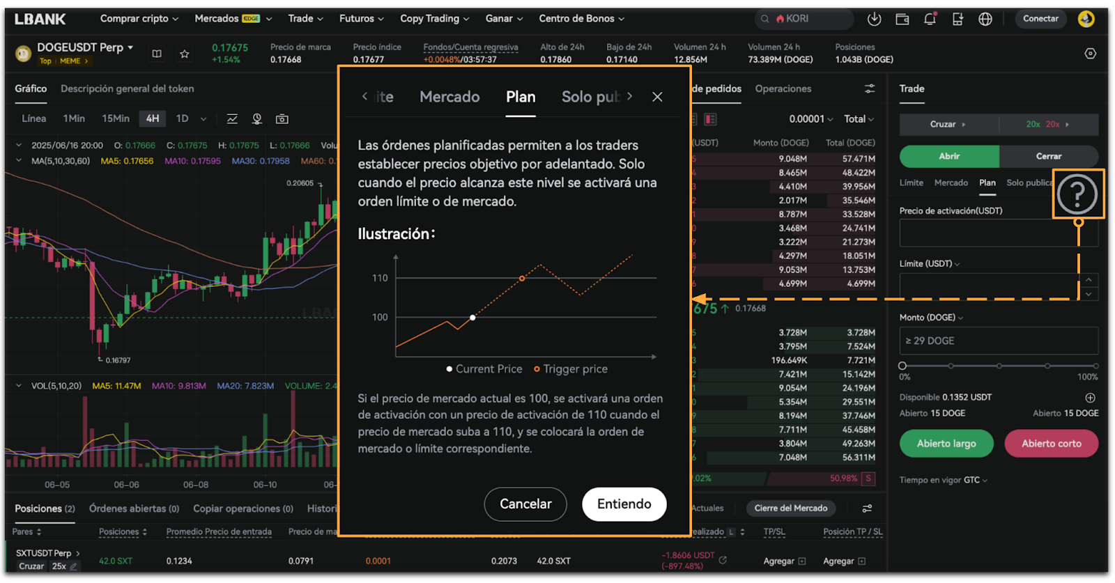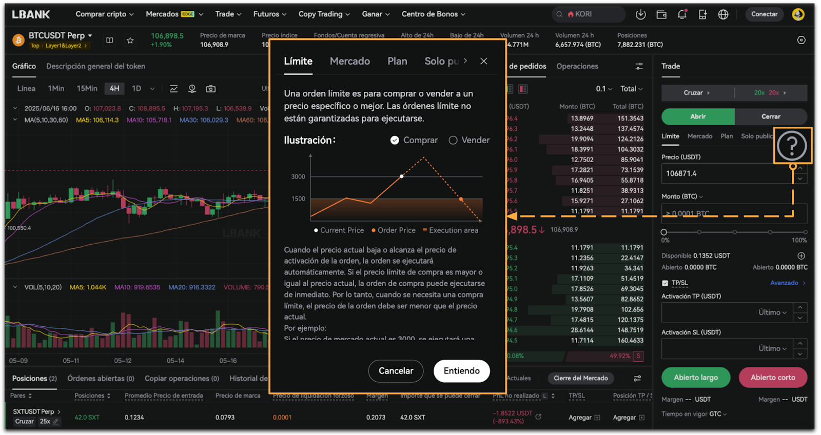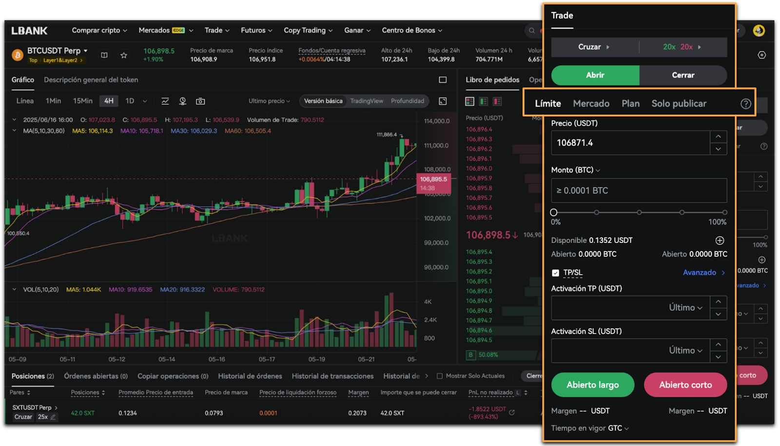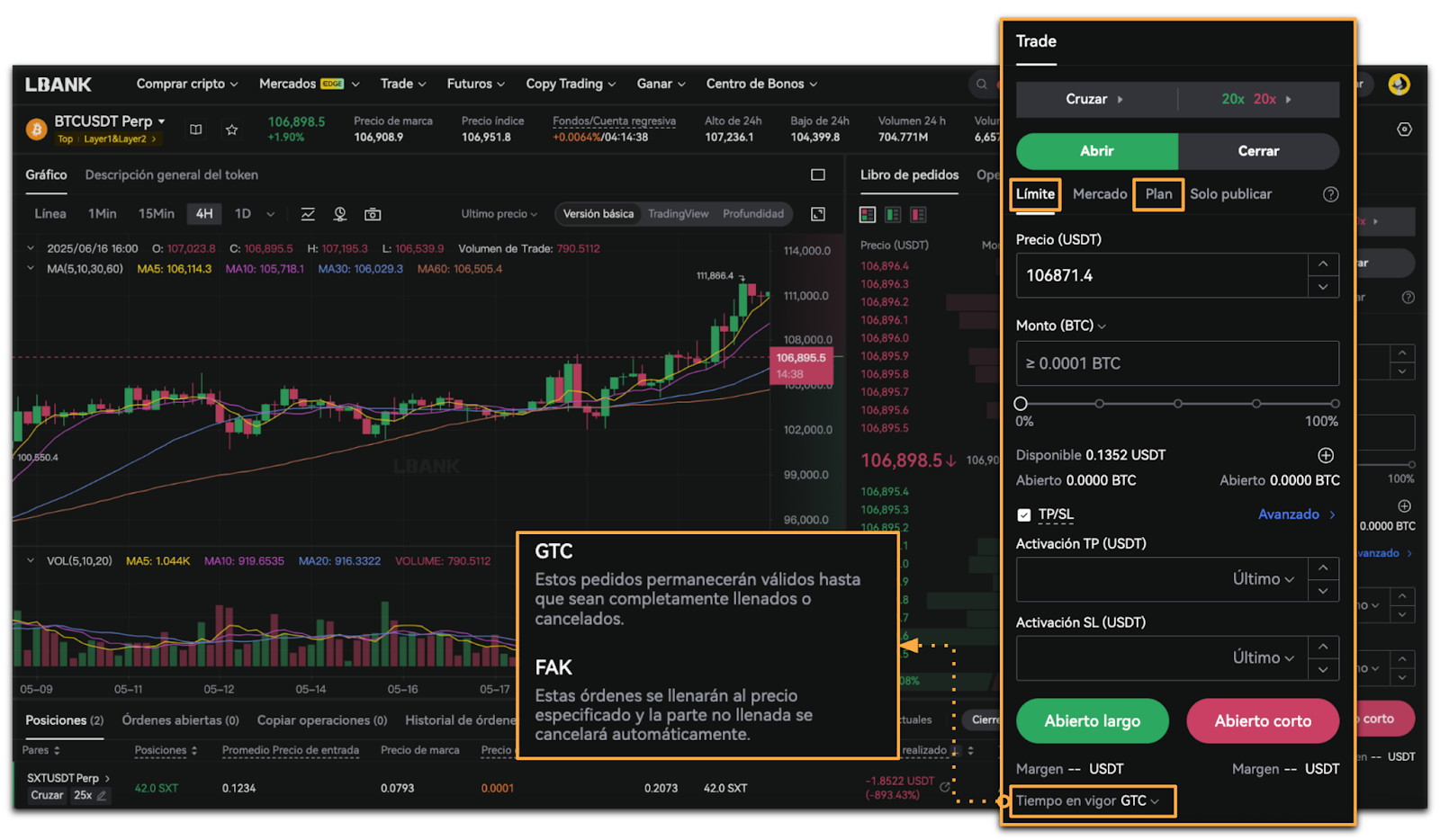 LBank Futures ofrece cuatro tipos de orden: Orden de Mercado, Orden Límite, Orden Plan y Orden Solo Publicar.