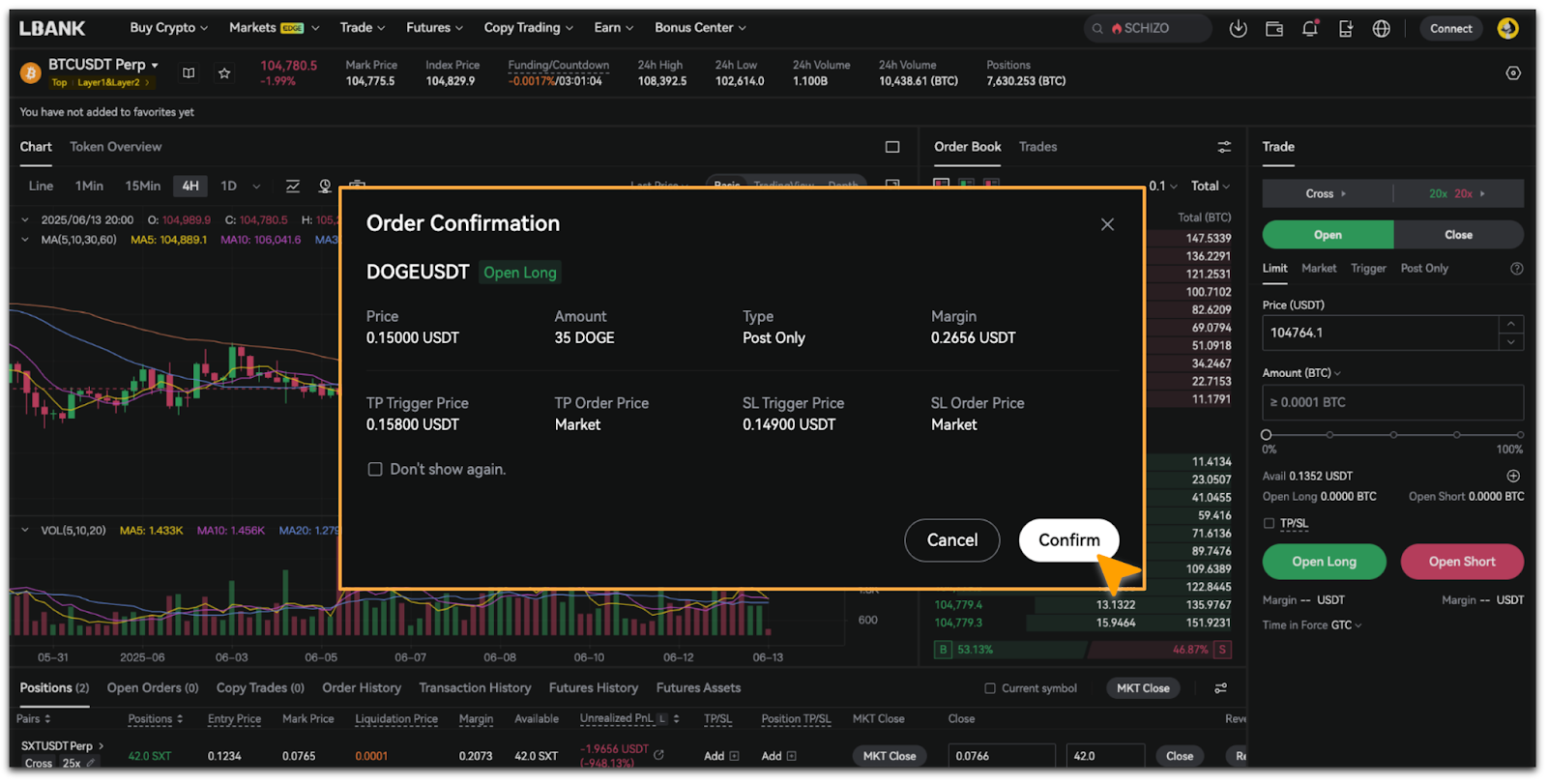 - En la ventana emergente de [Confirmación de Orden], verifica que el precio y monto estén correctos y toca [Confirmar].