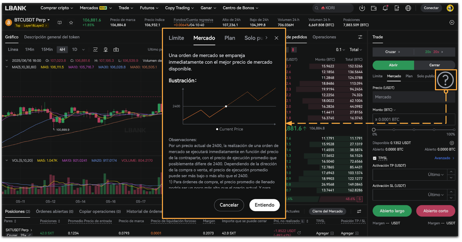 - Toca [Más información] para ver más sobre la Orden de Mercado.