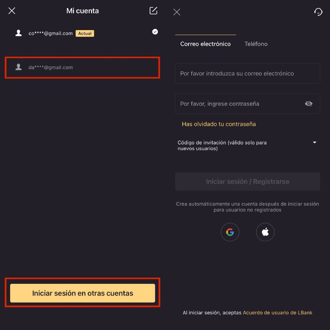 Si la cuenta no está iniciada, haz clic primero en "Iniciar sesión en otras cuentas". Después de iniciar sesión, podrás proceder con el cambio.