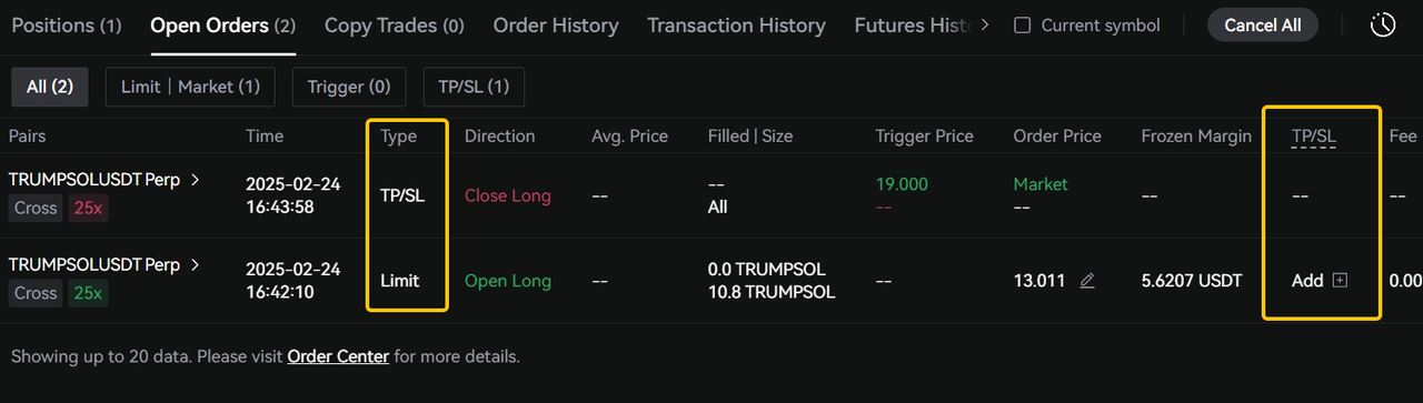 - Se ha añadido la sección "Todas las Órdenes" en la página web de trading de futuros, incluyendo órdenes de take-profit y stop-loss, facilitando la gestión de posiciones para los usuarios.