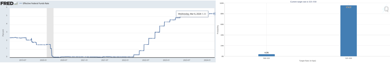 Left: EFFR, Right: Target Rate Probabilities for March 2024 Fed Meeting