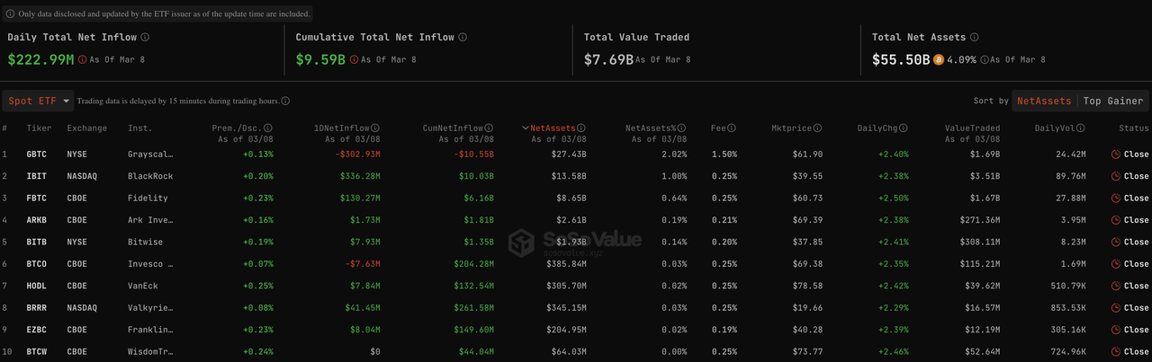 Bitcoin Spot ETF Overview (Source: SoSo Value)