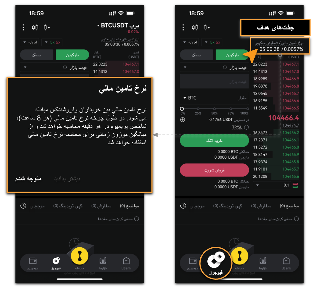 ۳. جزئیات نرخ تأمین مالی/شمارش معکوس هر جفت را بررسی کنید.