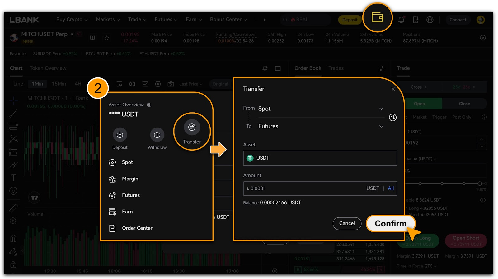 ۱. انتقال دارایی: تتر یا سایر داراییهای مارجین را از حساب اسپات به حساب فیوچرز منتقل کنید.
