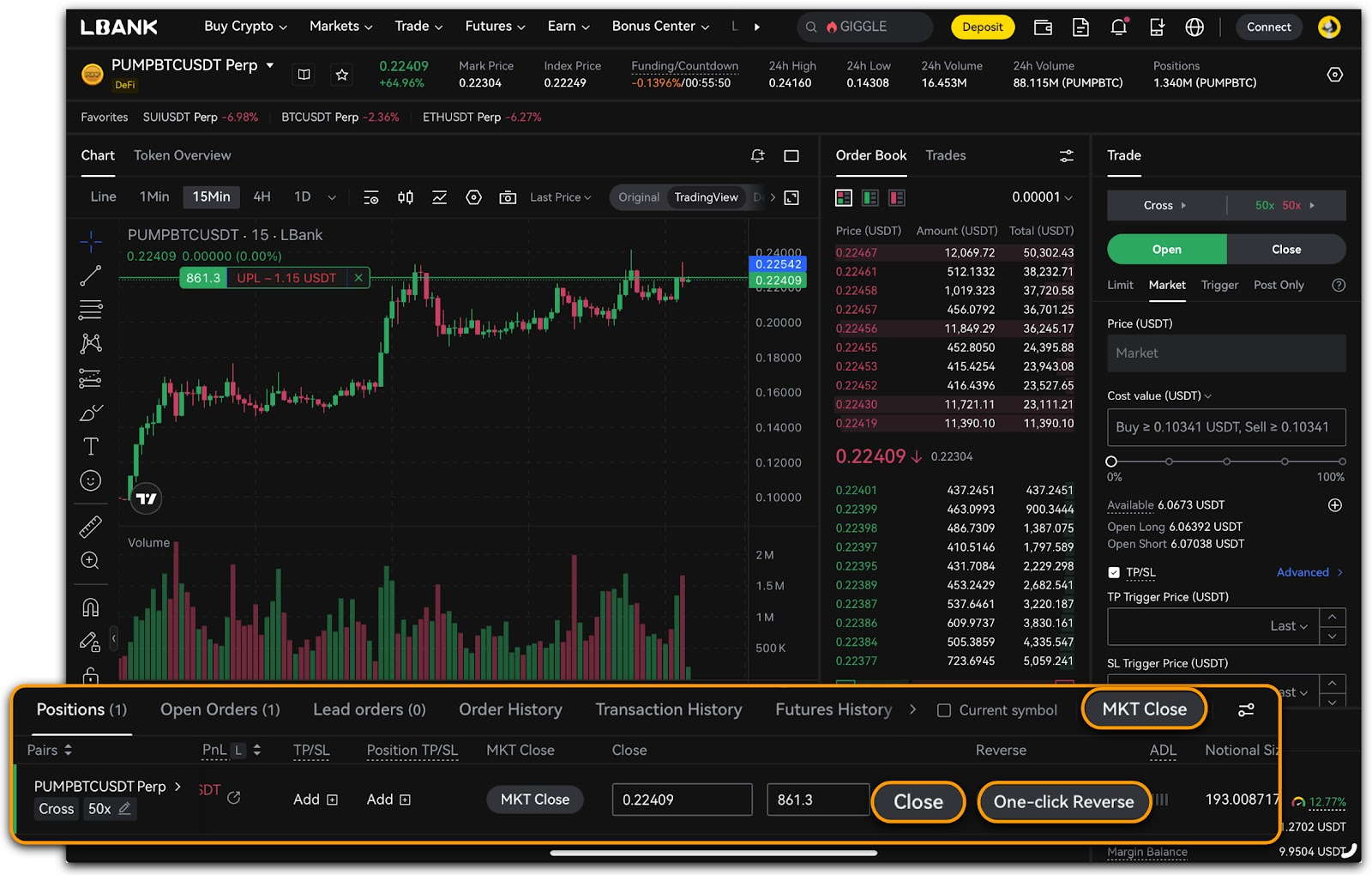 ۳. معکوس سازی با یک کلیک: ویژگی ویژه فیوچرز LBank برای باز کردن پوزیشن معکوس (مثلاً از لانگ به شورت) با همان حجم. این قابلیت پوزیشن فعلی را میبندد و پوزیشن معکوس را باز میکند—مناسب برای تغییر سریع جهت بازار.