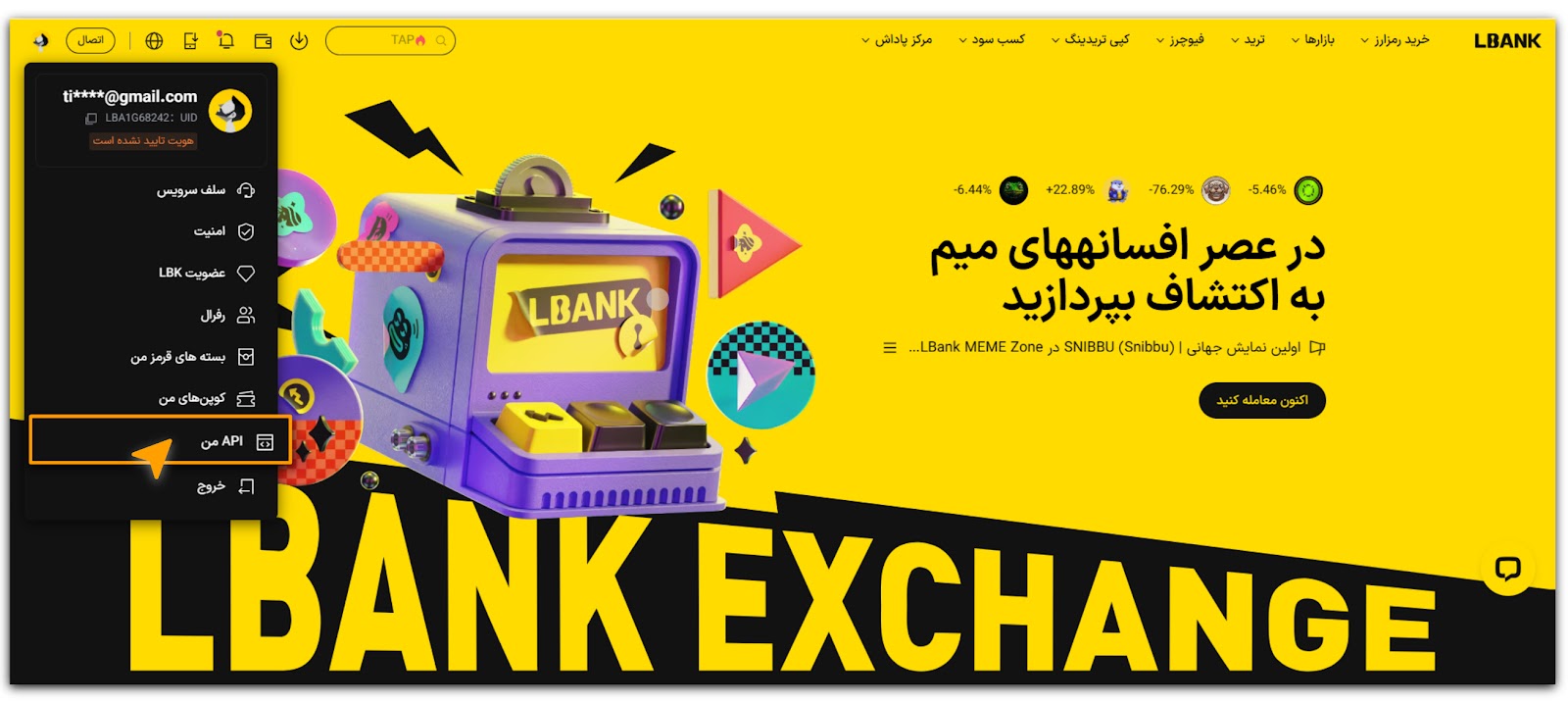 ۱. به آدرس https://www.lbank.com/fa بروید و وارد حساب کاربری خود شوید