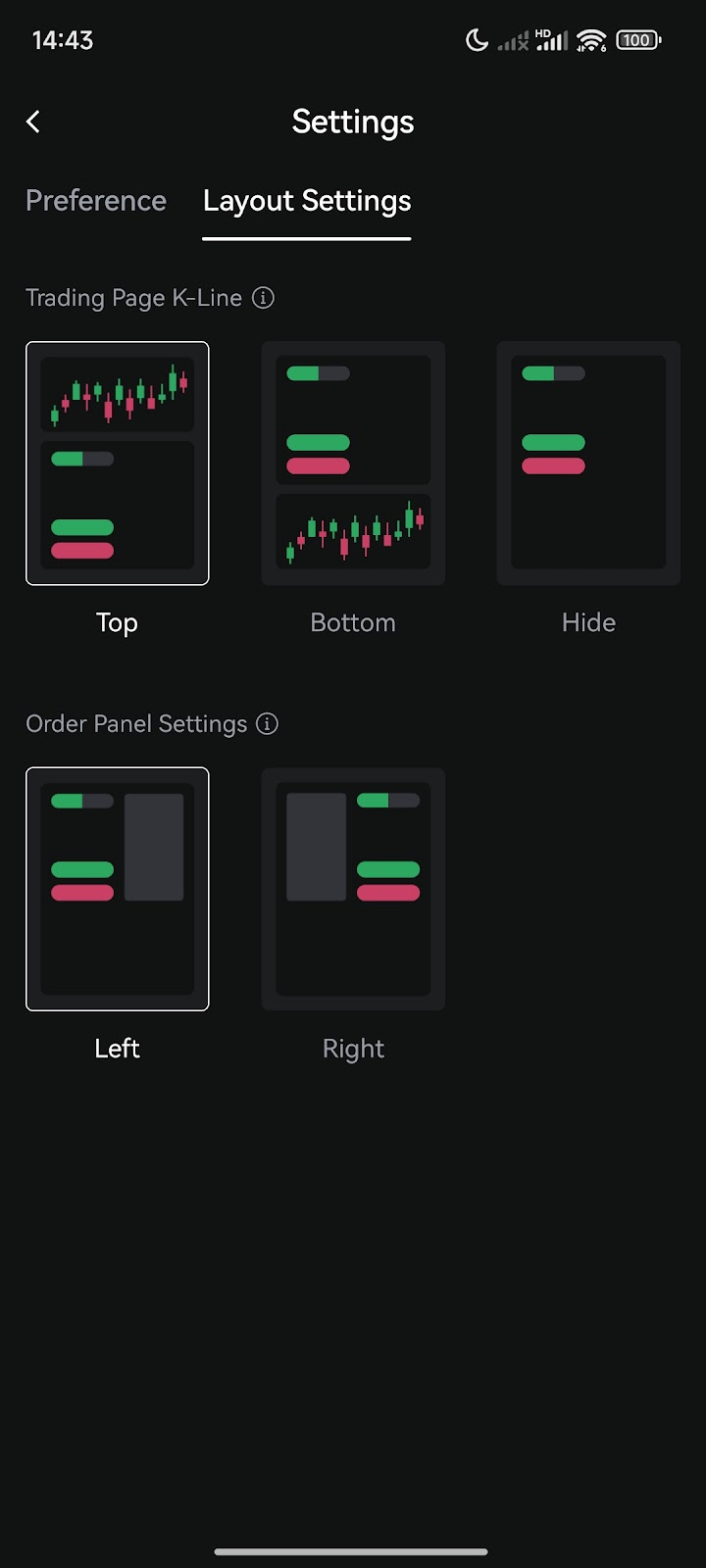 ۵. 【اپلیکیشن】 پشتیبانی از تنظیمات چیدمان مینی چارت K-Line سفارشی