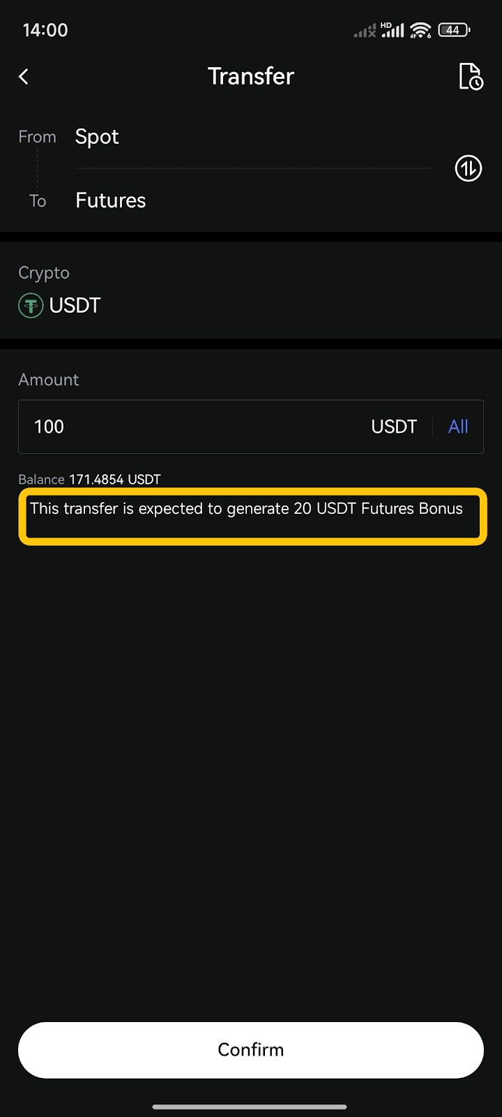 ۹. 【رویدادها】 نمایش میزان بونوس فیوچرز در صفحه انتقال برای کاربران شرکتکننده در رویداد Futures Carnival