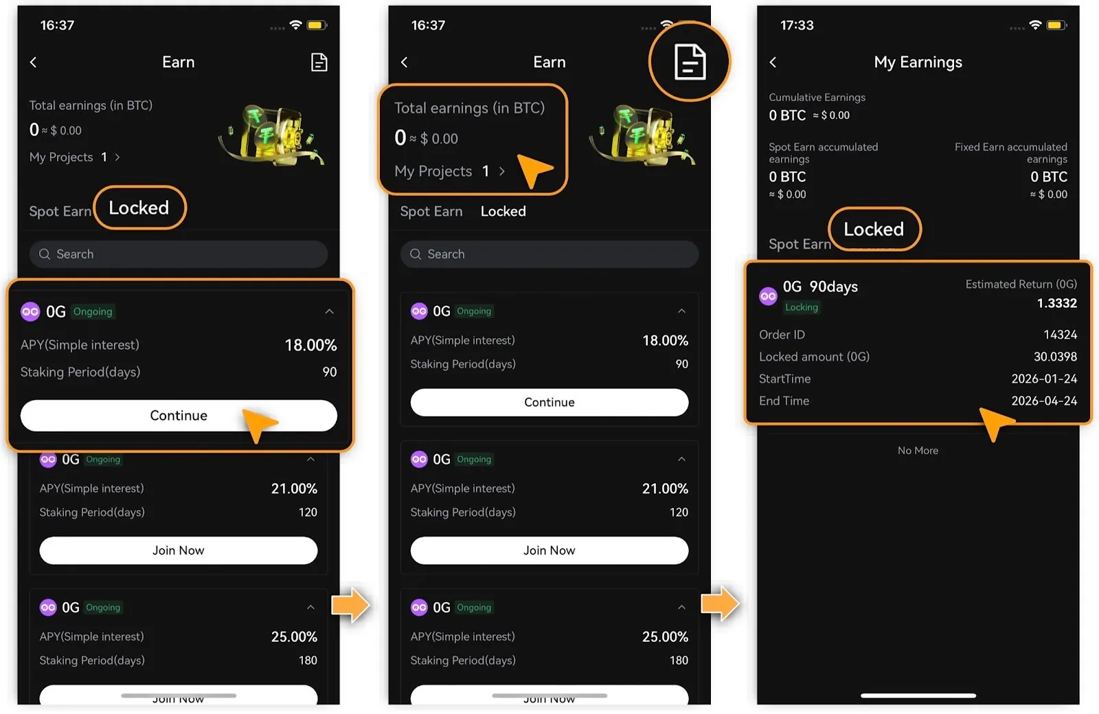 Connectez-vous à l’application LBank, puis accédez à [Earn] > [Verrouillé].