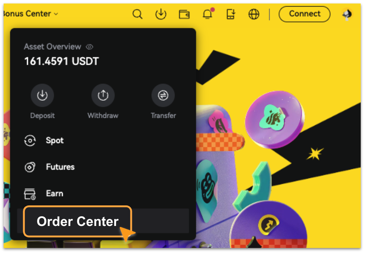 - Para ver los detalles de transacción, ve a [Billetera] - [Centro de Órdenes]