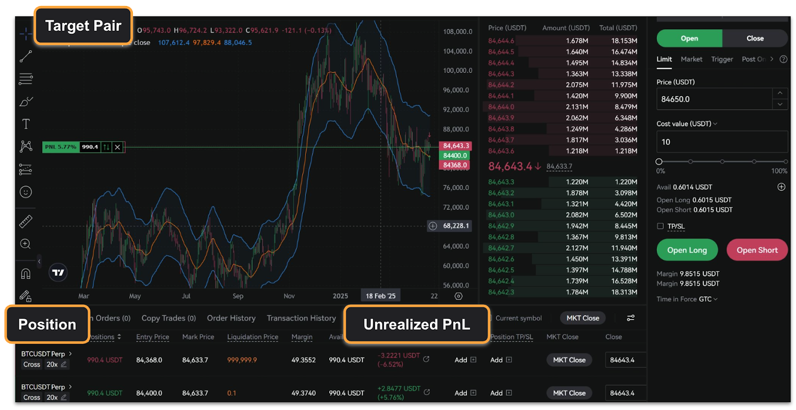 - Aumentar el apalancamiento no multiplica directamente el PnL; el PnL depende del monto de la posición y las fluctuaciones del precio. Un mayor apalancamiento reduce el margen necesario para abrir una posición; una mayor cantidad de contratos y una diferencia de precio mayor respecto al precio de entrada resultan en un PnL más alto.