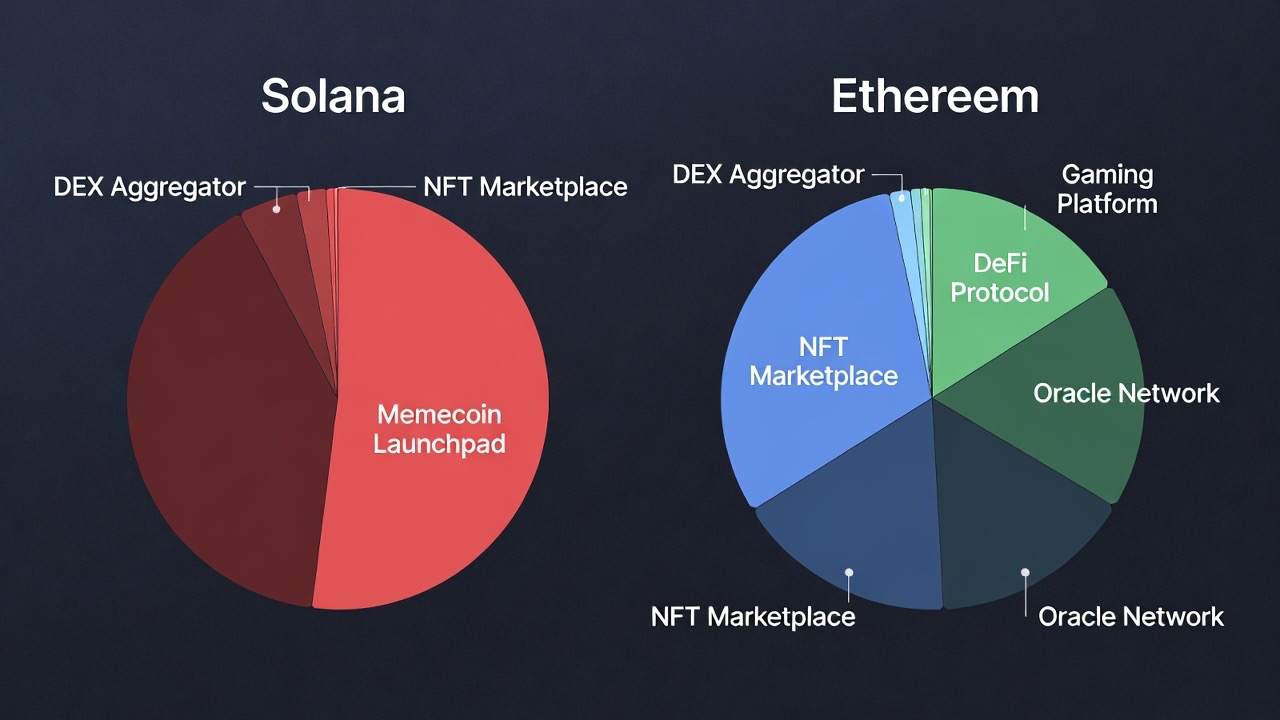 Di sisi lain, sumber pendapatan Solana hampir secara eksklusif bergantung pada aktivitas pengguna ritel, terutama terkait dengan koin meme.