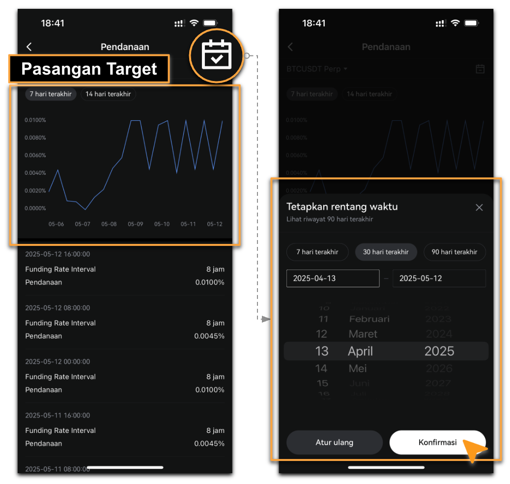 - Gunakan ikon [Kalender] untuk mengatur rentang tanggal, lalu klik [Konfirmasi] untuk hasil yang lebih detail.