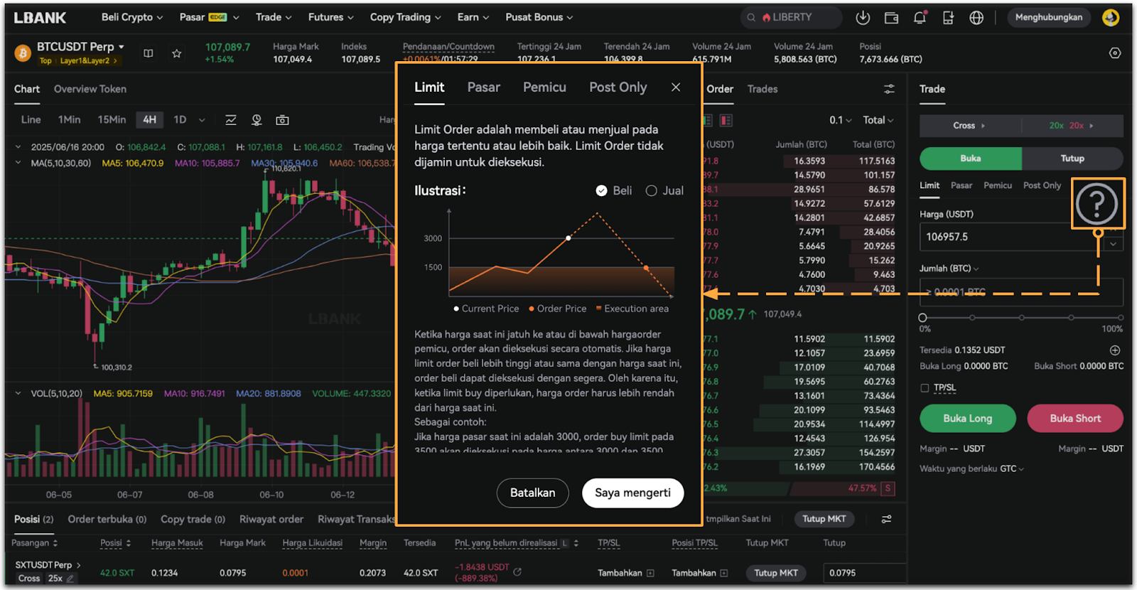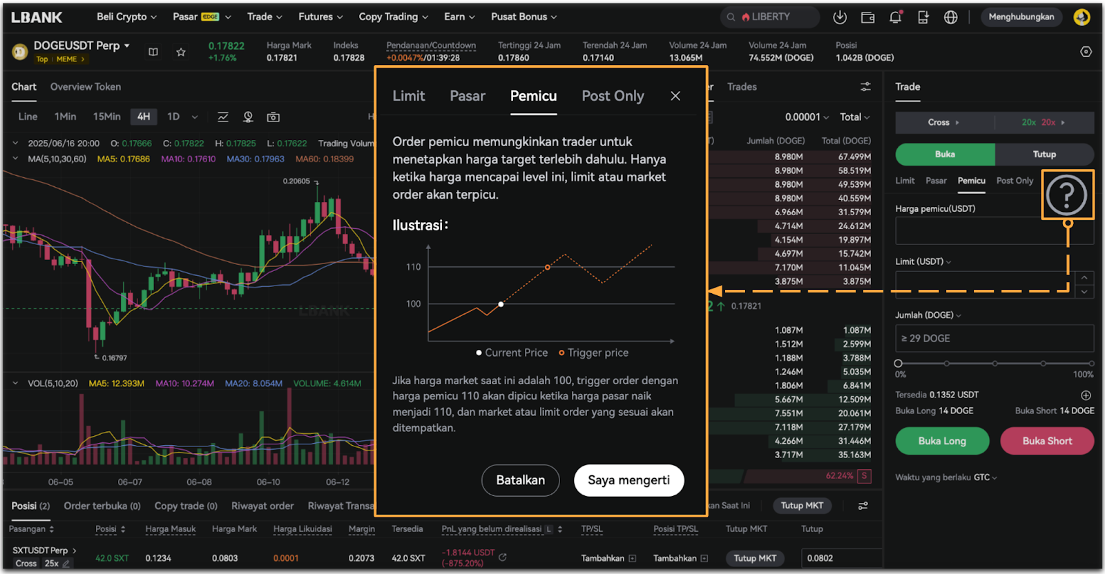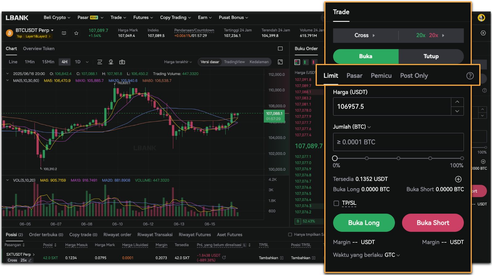 LBank Futures menawarkan empat jenis order: Order Pasar, Order Limit, Order Pemicu, dan Post Only.