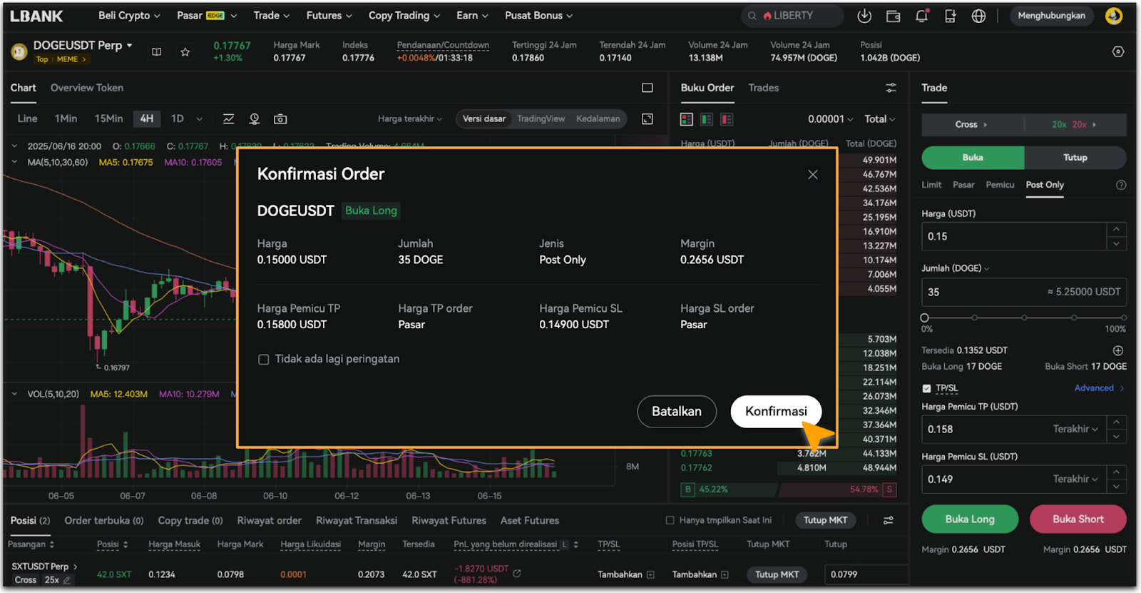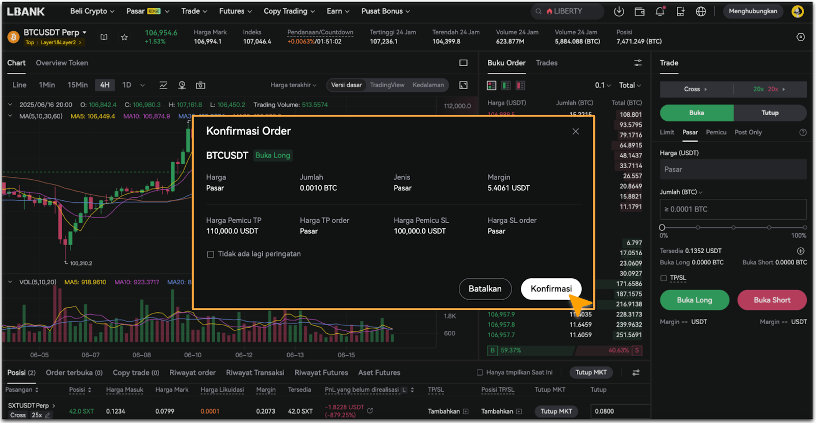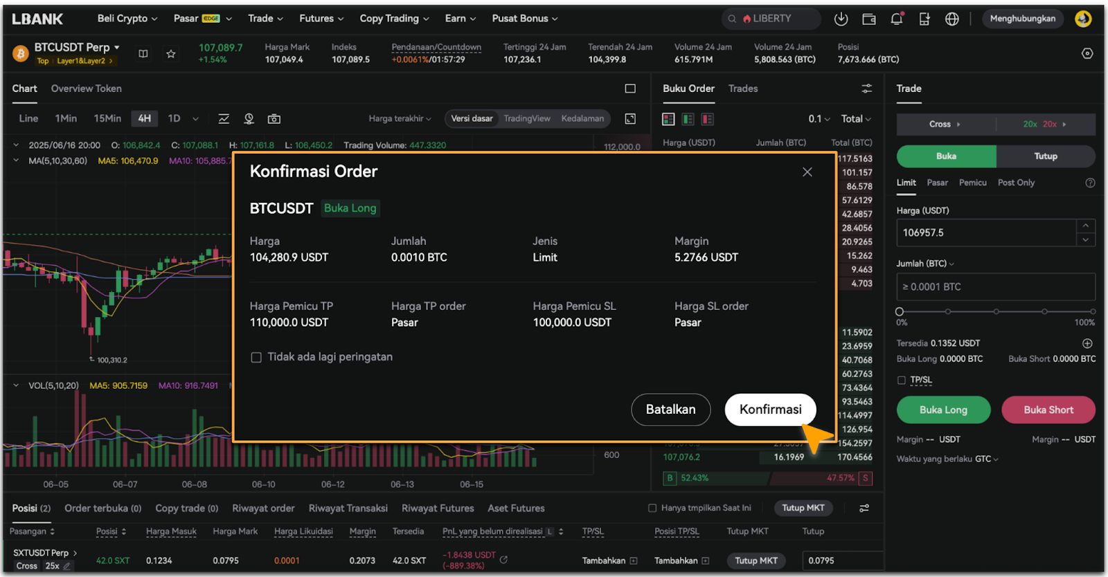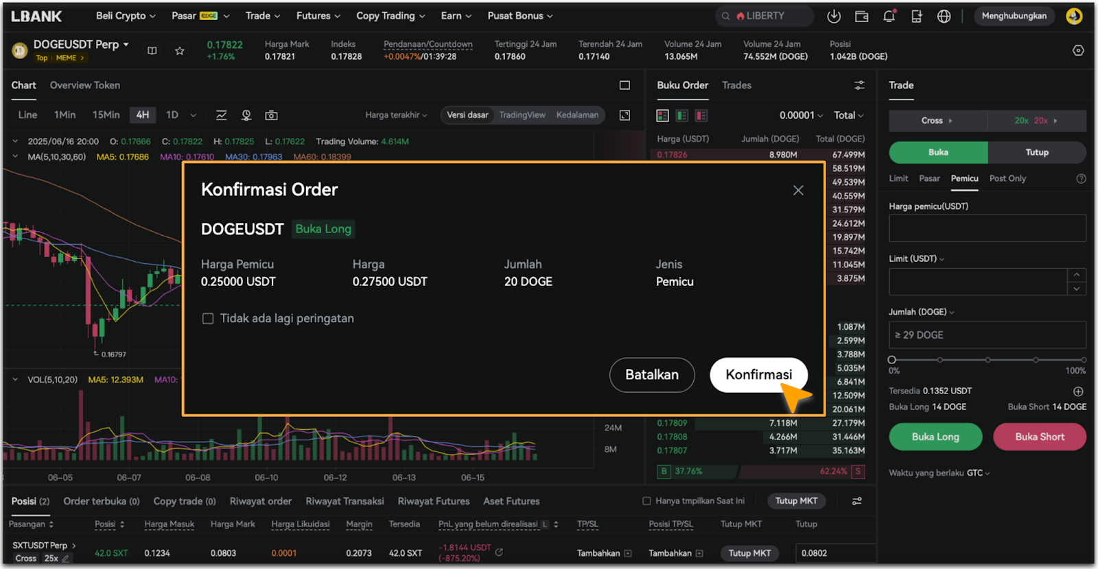 2. Pada pop-up [Konfirmasi Order], pastikan bahwa informasi harga dan jumlah order sudah benar, lalu klik [Konfirmasi].