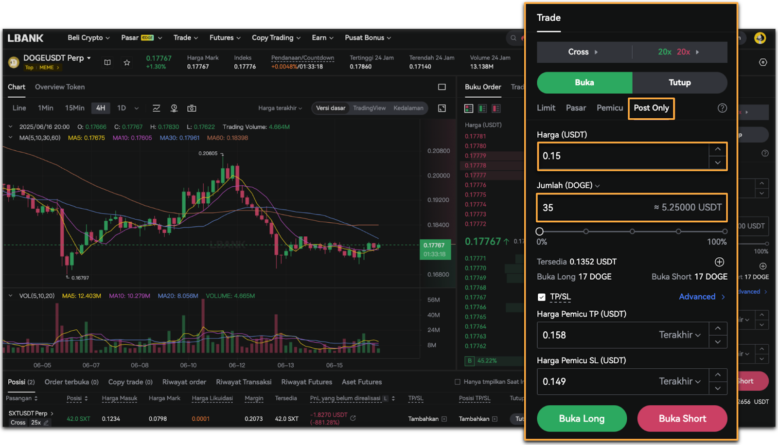 1. Pilih [Post Only], masukkan [Harga] dan [Jumlah], lalu klik [Buka Long] atau [Buka Short].