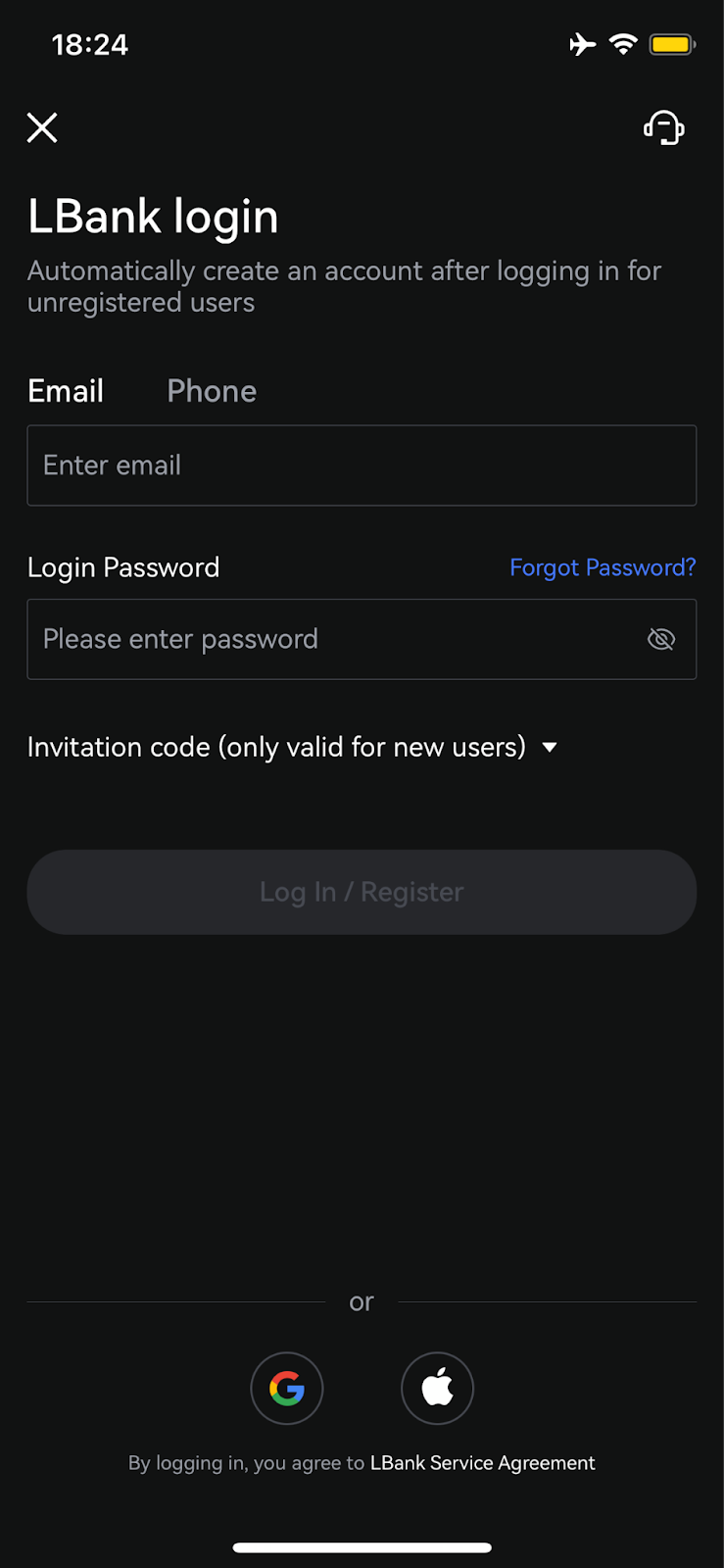 - Buka Aplikasi LBank dan Anda akan langsung masuk ke halaman pendaftaran.