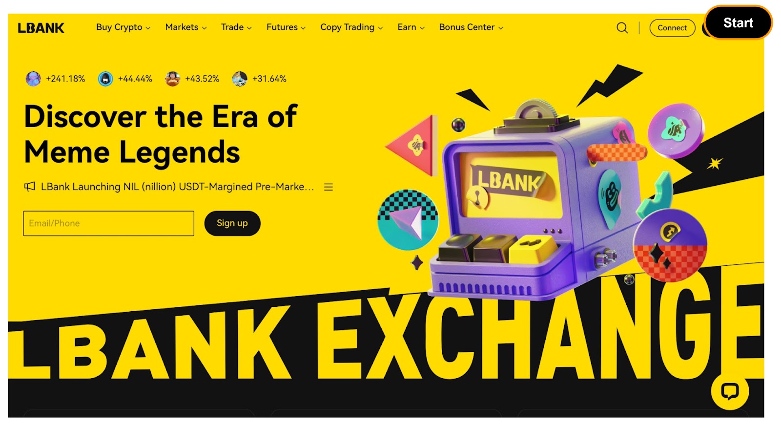 - Buka https://www.lbank.com/id, klik [Mulai] di menu kanan atas