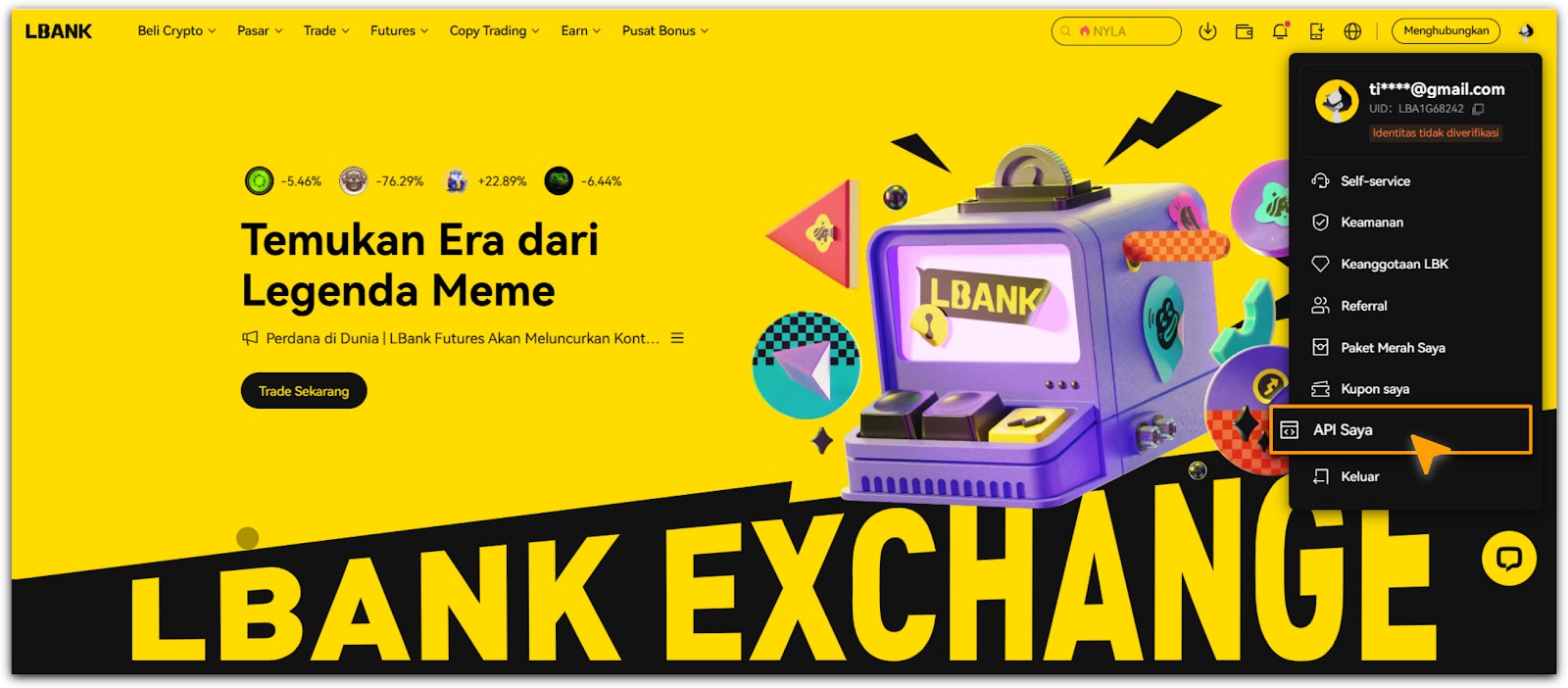 - Buka https://www.lbank.com/id dan masuk ke akun Anda.