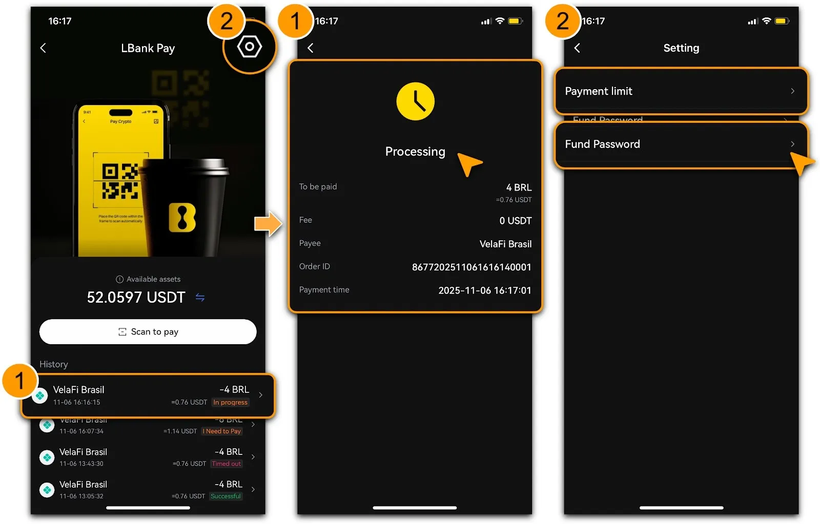 Ensure USDT Balance:LBank Pay uses USDT for payments. Transfer USDT to your spending account in advance.