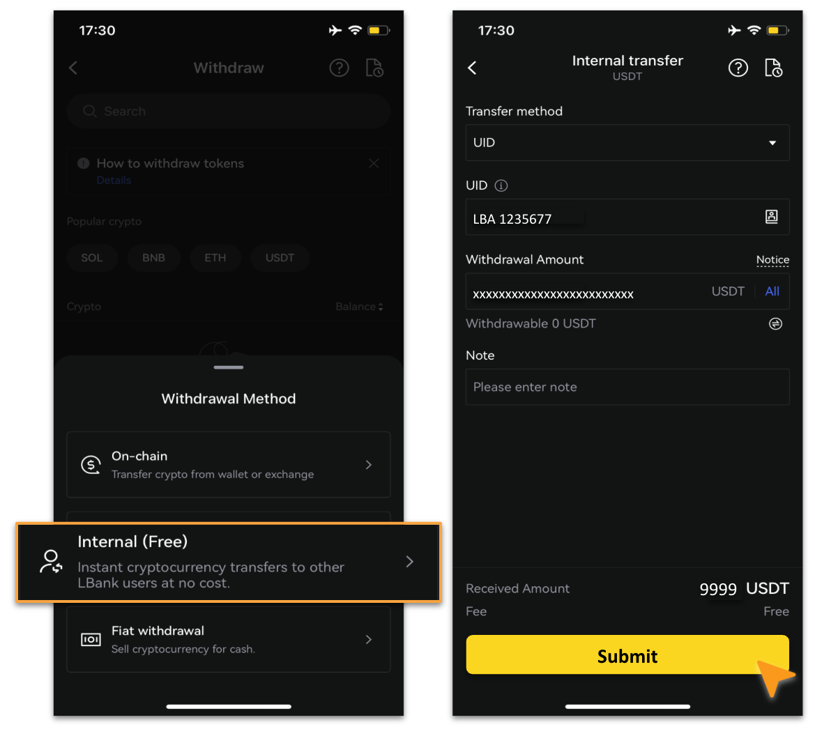 - Insira o [UID] e os detalhes do valor a ser retirado.