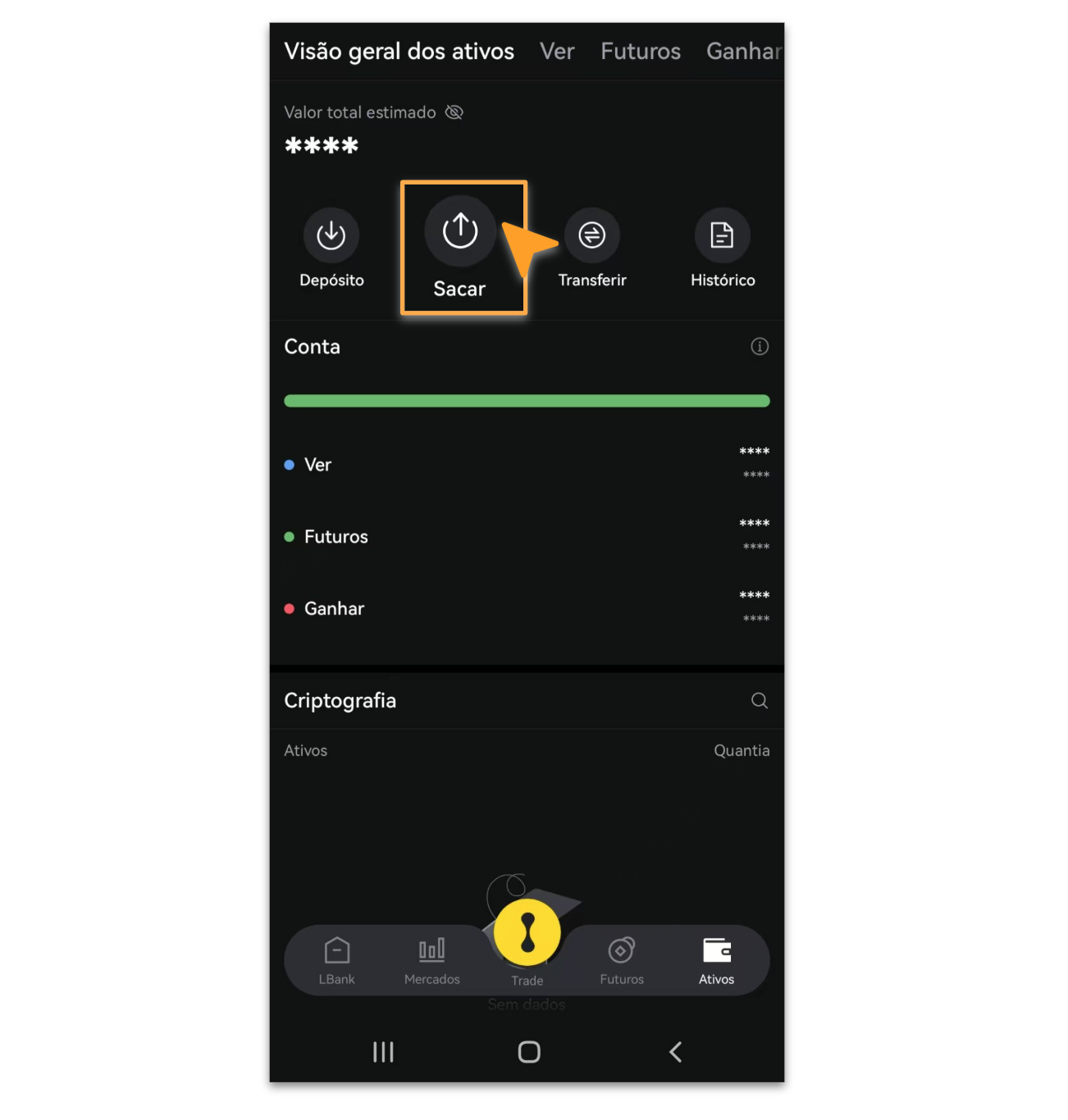 - Toque em [Ativos] no menu inferior do aplicativo da LBank.