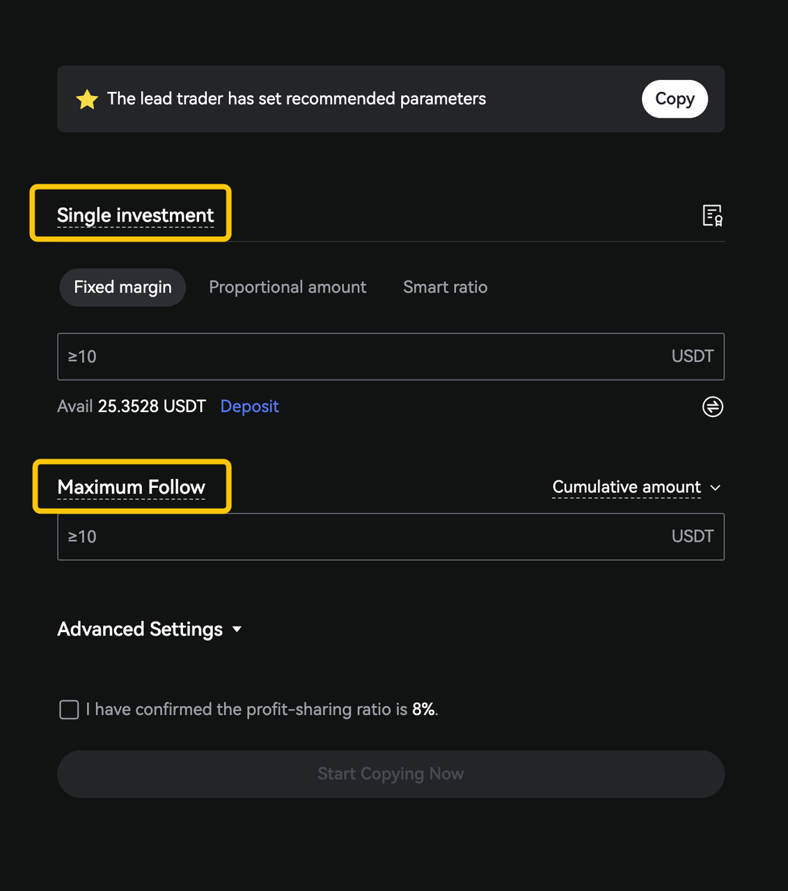 Atualizações de Copy Trading