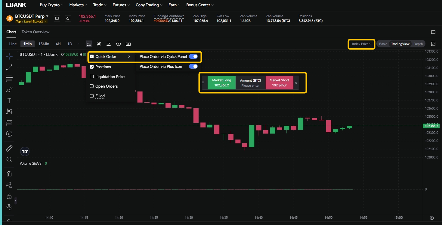 Upgrade do Gráfico K-Line de Futuros: Preço de Índice e Painel de Ordem Rápida