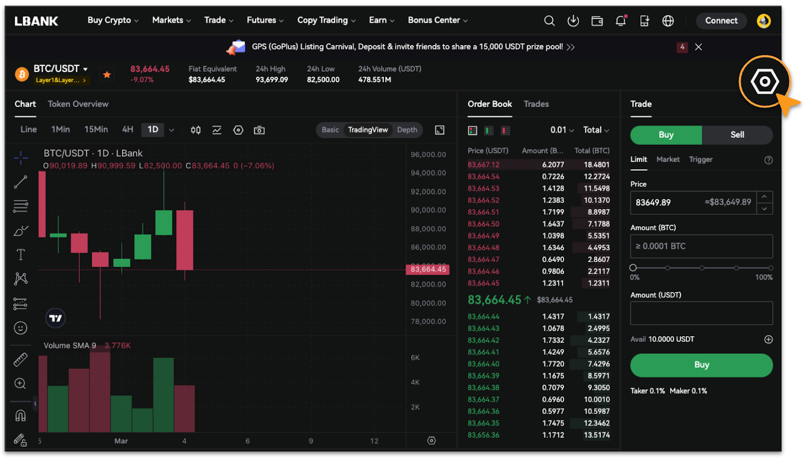 For more details of trading fee, please go visit https://www.lbank.com/fee