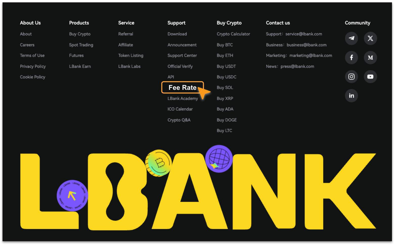 Tap [Fee Rate] from the bottom menu to review the Fee Rates of Spot/Futures Trading in detail.👉https://www.lbank.com/fee