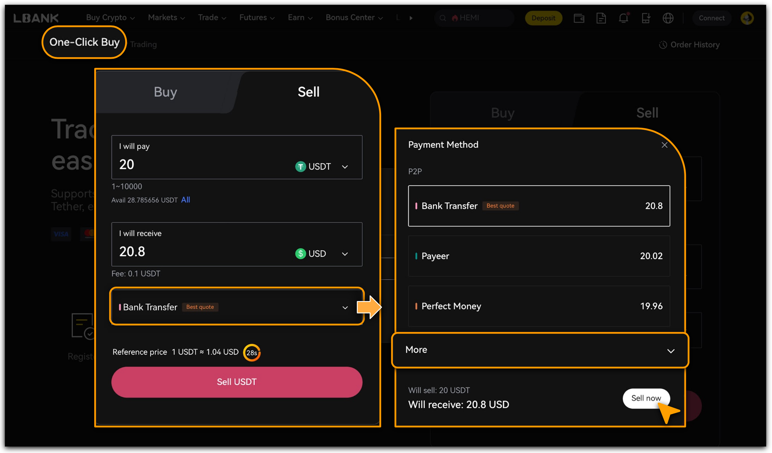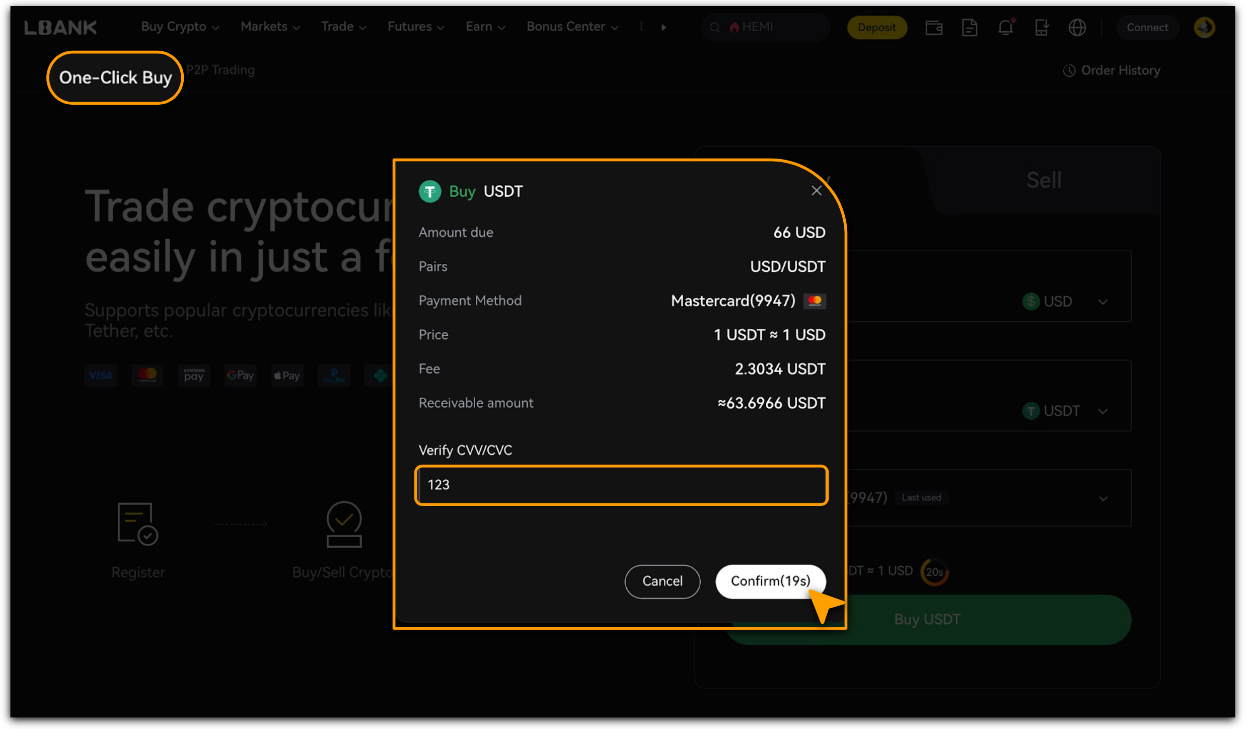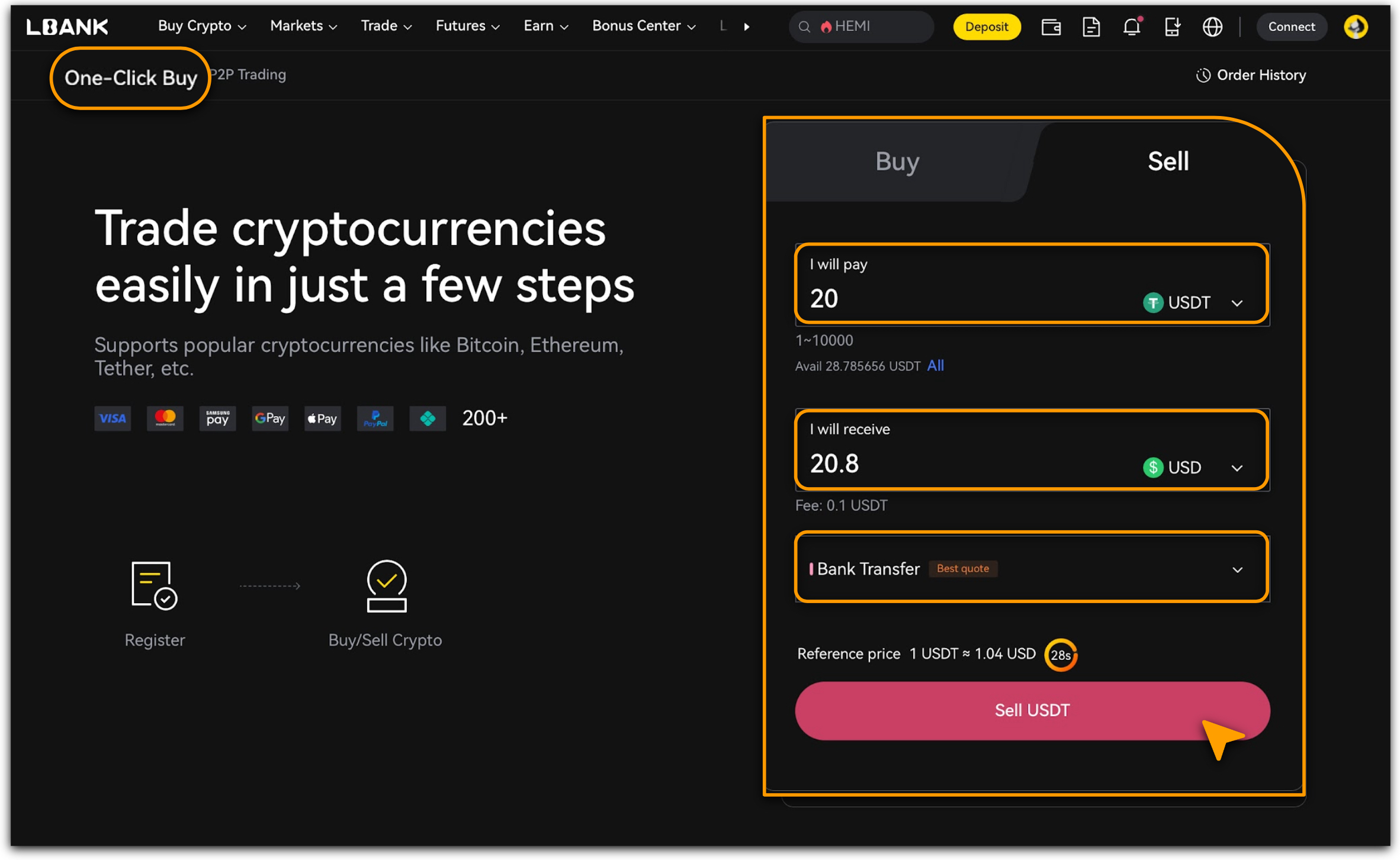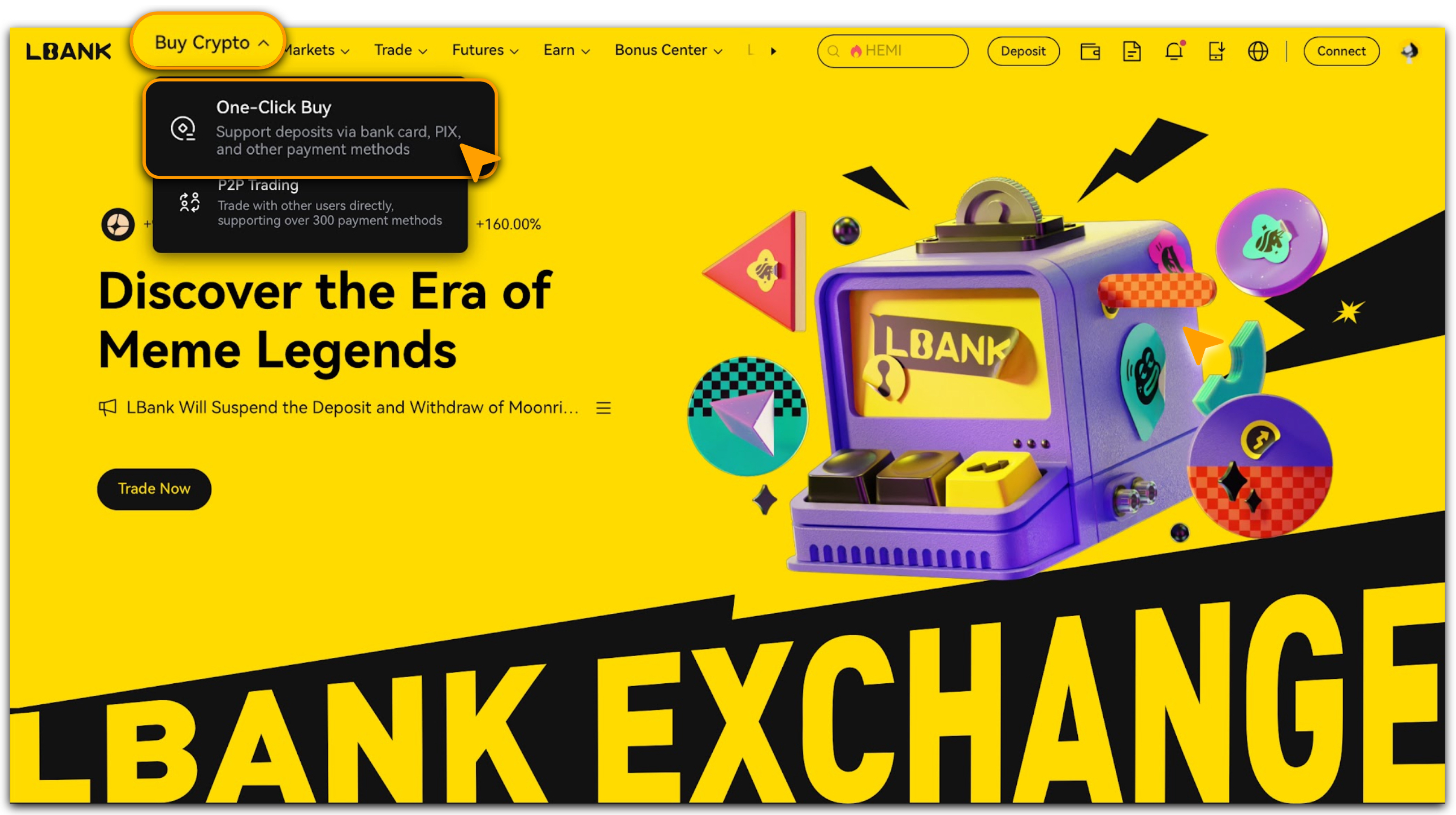 LBank, a leading global cryptocurrency exchange since 2015, is committed to providing a secure and convenient trading experience. We support over 800 cryptocurrencies, including USDT, Bitcoin (BTC), Ethereum (ETH), and more, with multiple payment methods for seamless fiat-to-crypto transactions (e.g., USD, EUR). This guide outlines the “One-Click Buy/Sell” process to help you efficiently buy and sell cryptocurrencies.