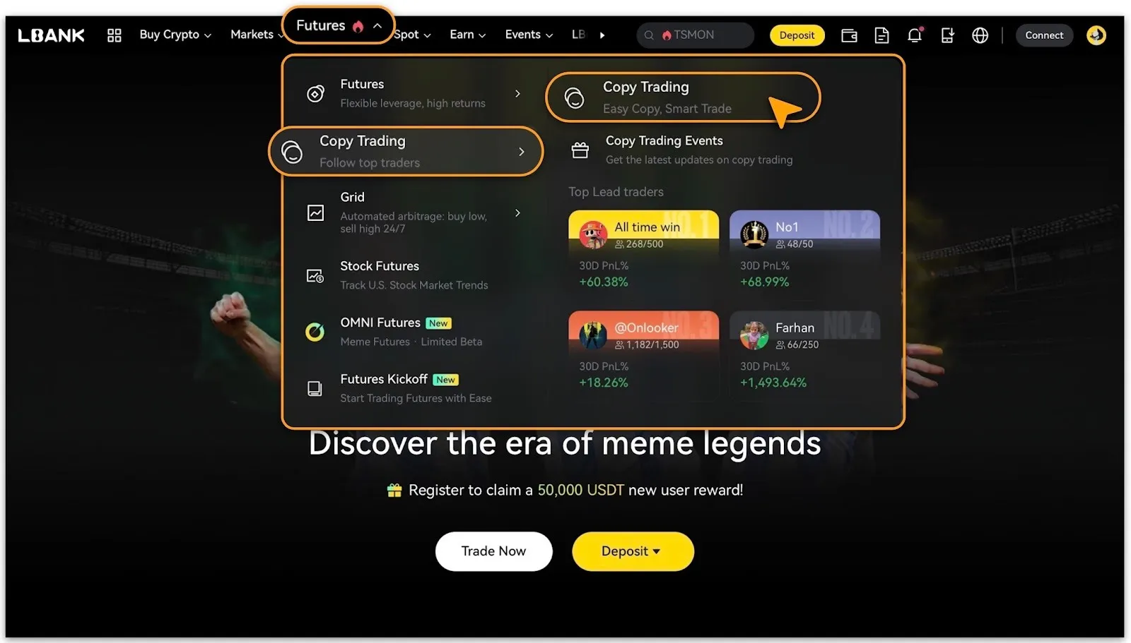 Log in to the official LBank website. From the navigation bar, go to「Futures > Copy Trading」.