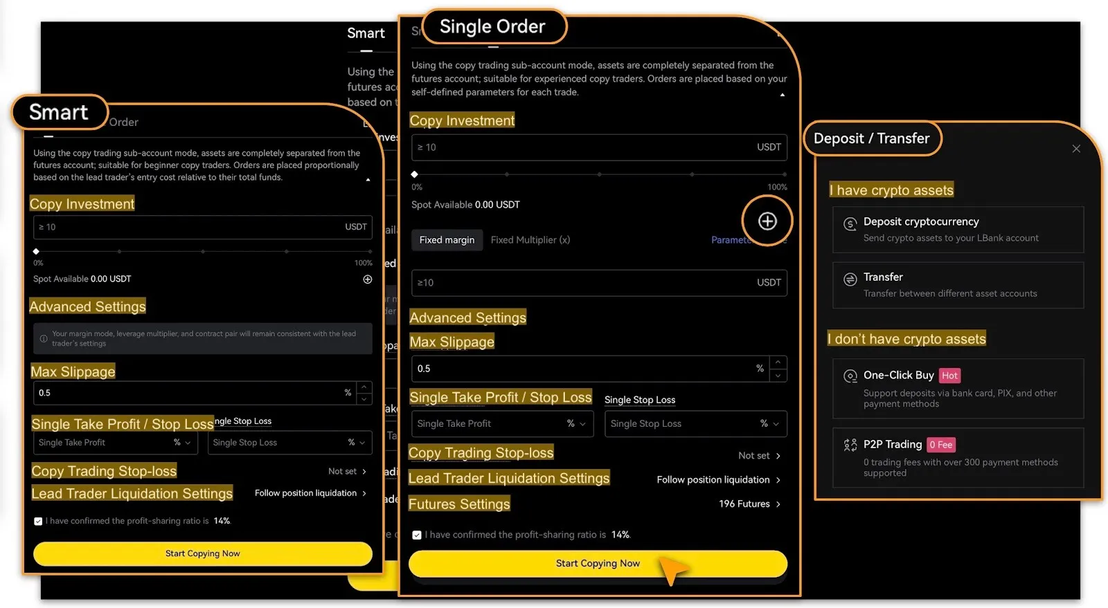 Confirm the lead trader’s Profit-sharing Ratio before clicking「Start Copying Now」.