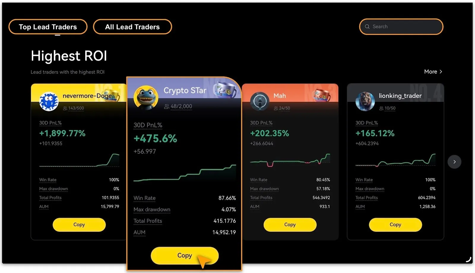 View「Top Traders」or explore「All Traders」.