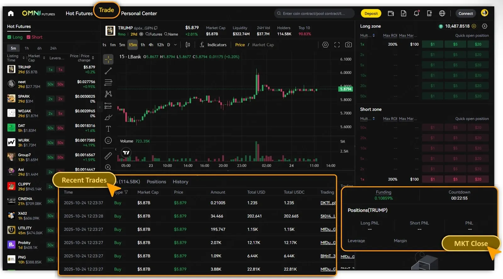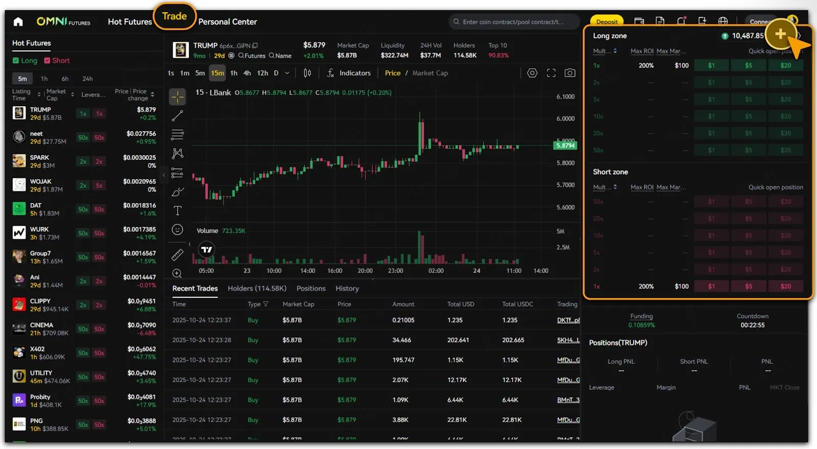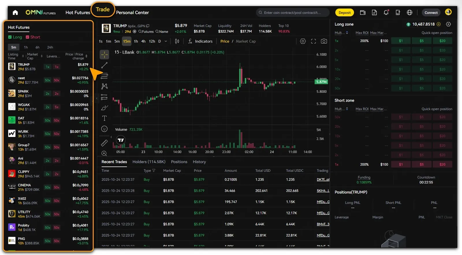 Omni Futures offers a USDT-margined, cross-chain derivatives trading service that supports small-position entry and high leverage, and is designed for users with a certain level of risk awareness.
