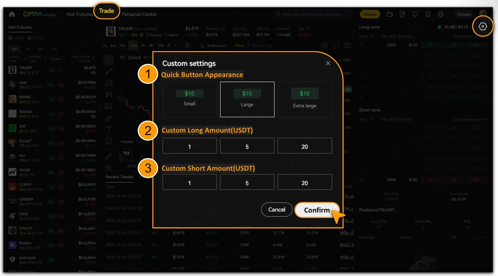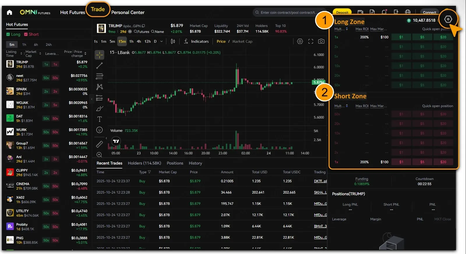 Transfer spot assets directly to Omni Futures, or top up via 「LBank One-Click Buy/Sell Crypto Guide」&「LBank Deposit Guide」.