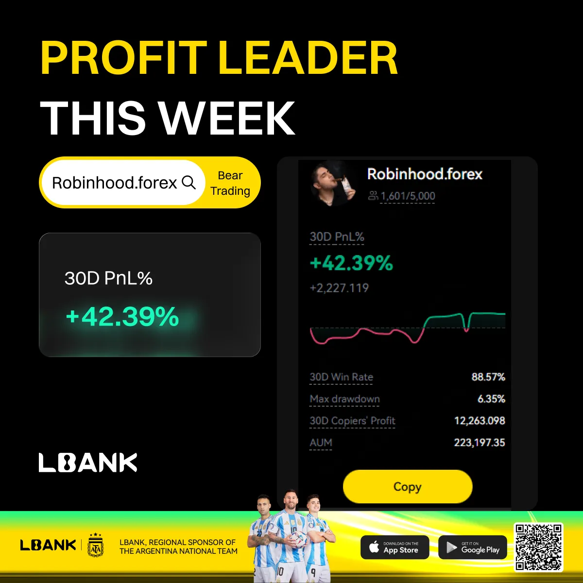 3.1 Meet our Star Traders of the week: "Robinhood.forex" has become the star trader of the week with 30D PnL% of +42.39%! Easy Copy, Smart Trade! Start your copy trading journey now!