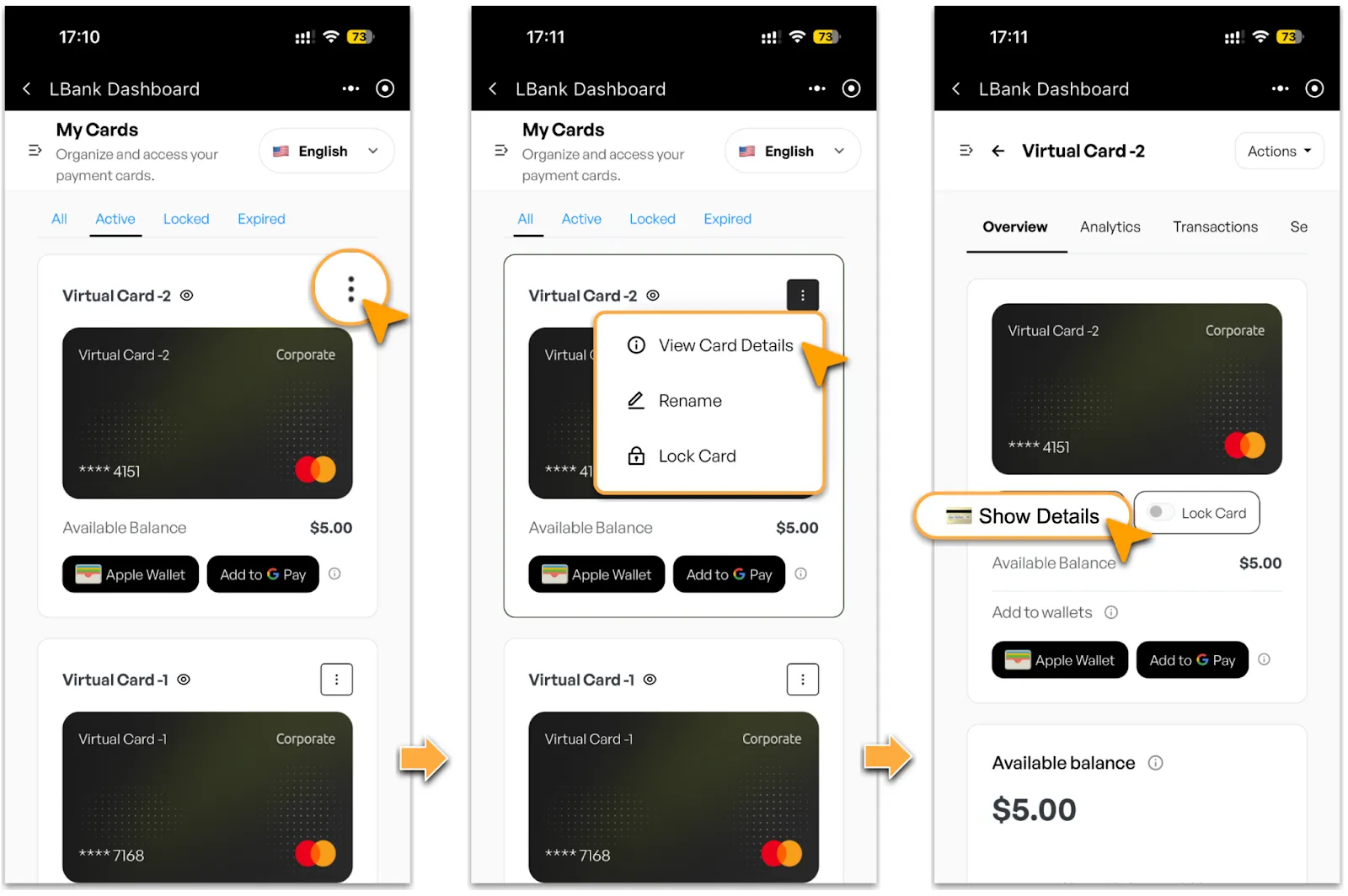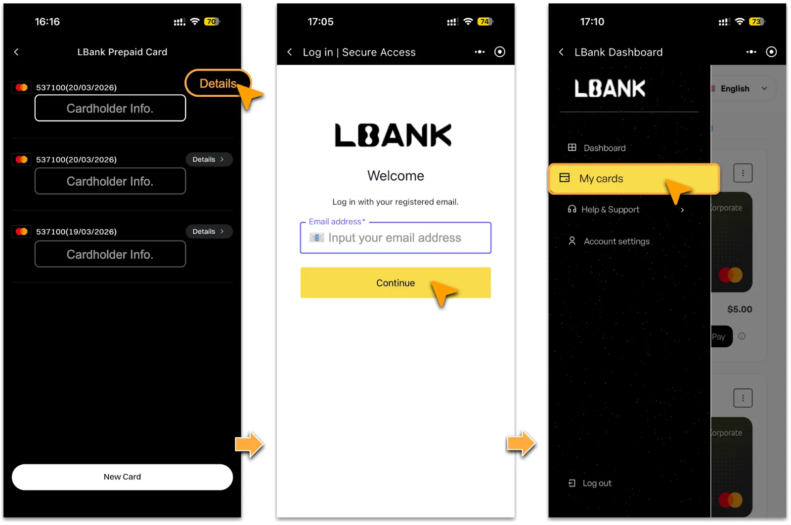 2. Go to「View Card Info > LBank Prepaid Cards」and click「Details」 on the relevant card.